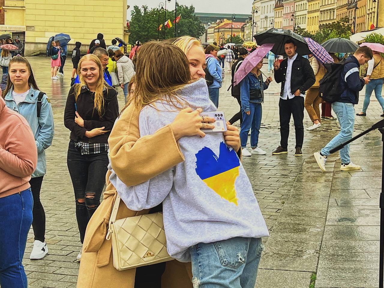 Sunday. Warsaw. Jetlag. Rain. Drops of rain trickle down from the umbrella and splatter onto the cobblestones. The palace square: a couple dozen men and women in a small huddle under the column of Polish monarch Sigismund III. They stand in a crescent moon. I approach the crescent moon and hear a beautiful, strong female voice. A man in black plays an acoustic guitar, near him is a girl in a gray hoodie. She is without an umbrella and is soaked to the bone. The girl in the gray hoodie sings: