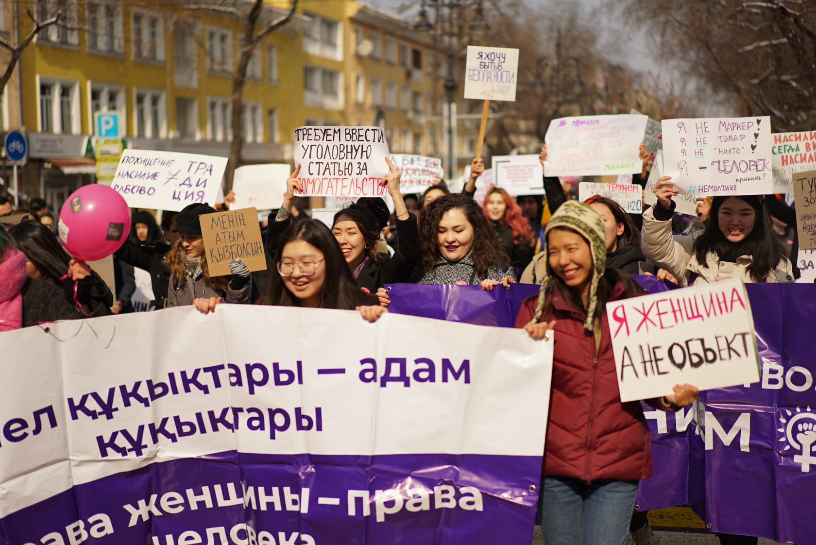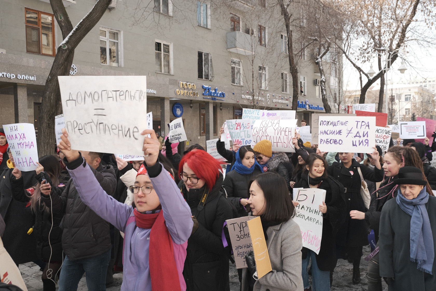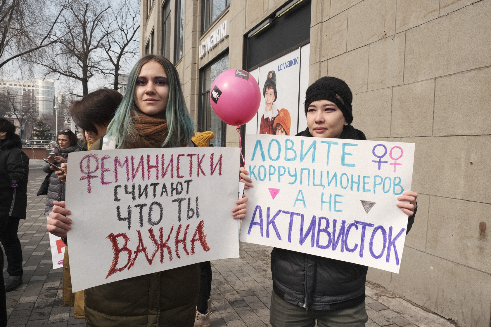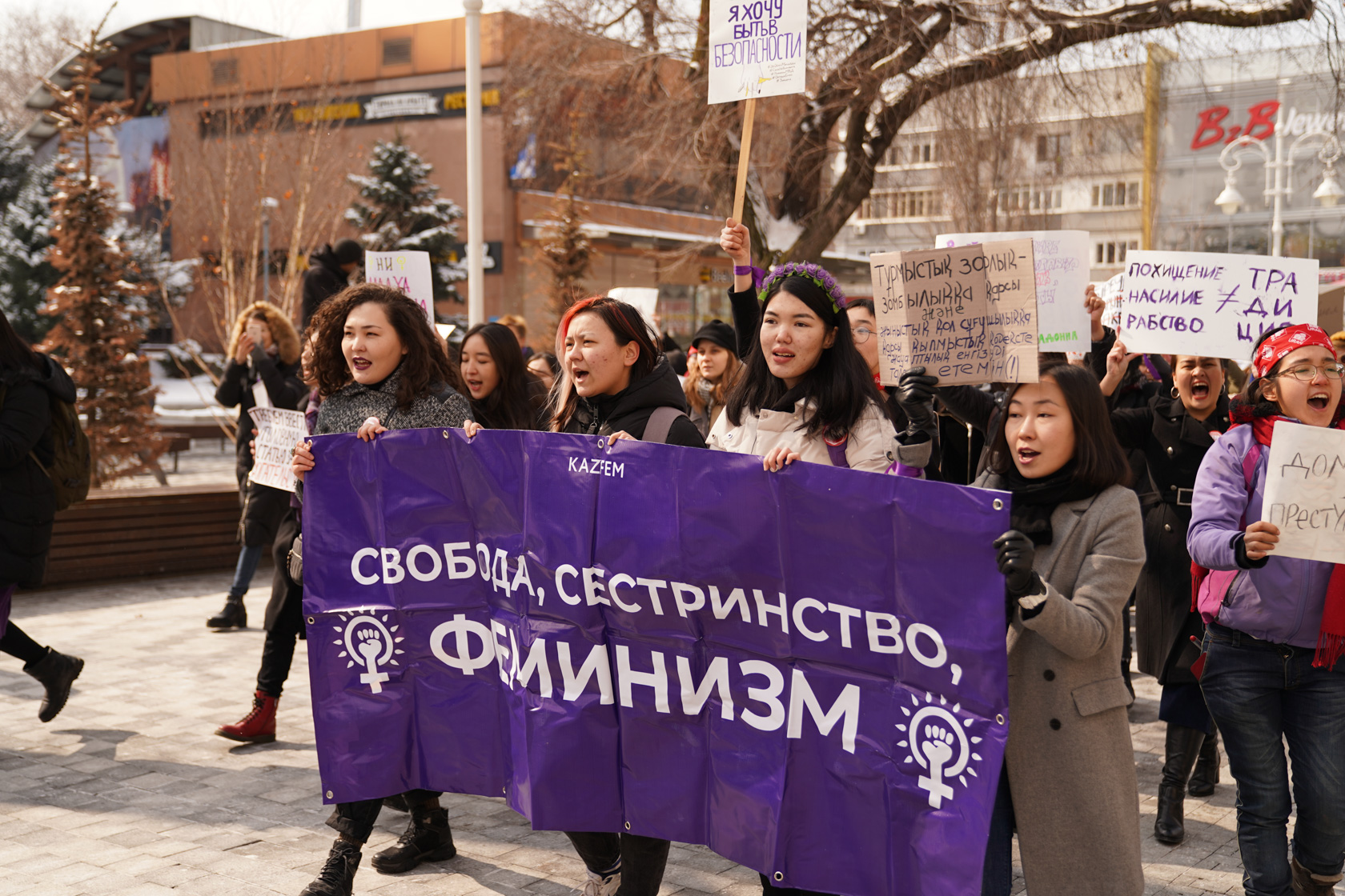 «Сегодня в этот исторический день мы, феминистские инициативы Казахстана: КазФем, Феминита, Фемагора, Фемсреда и общественный фонд "Свет" объединились, чтобы вместе заявить о правах женщин.