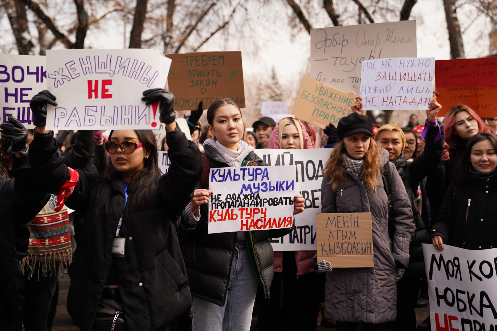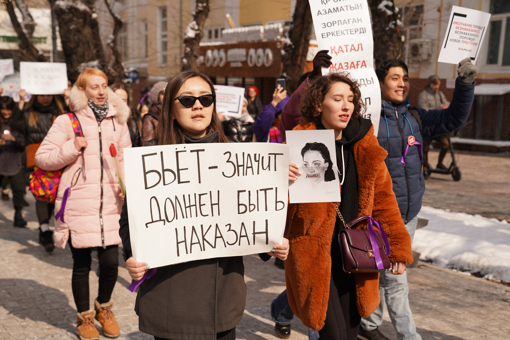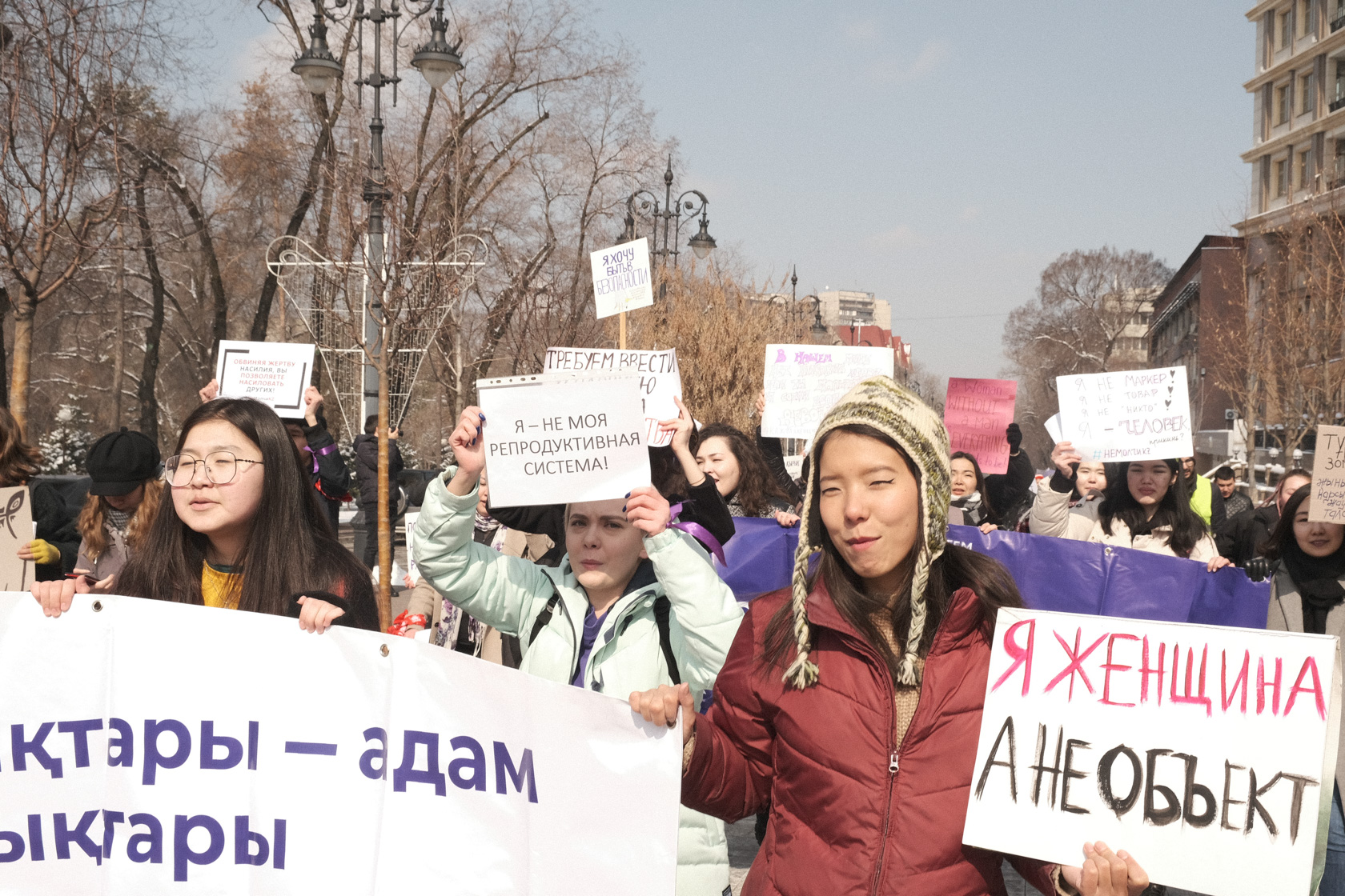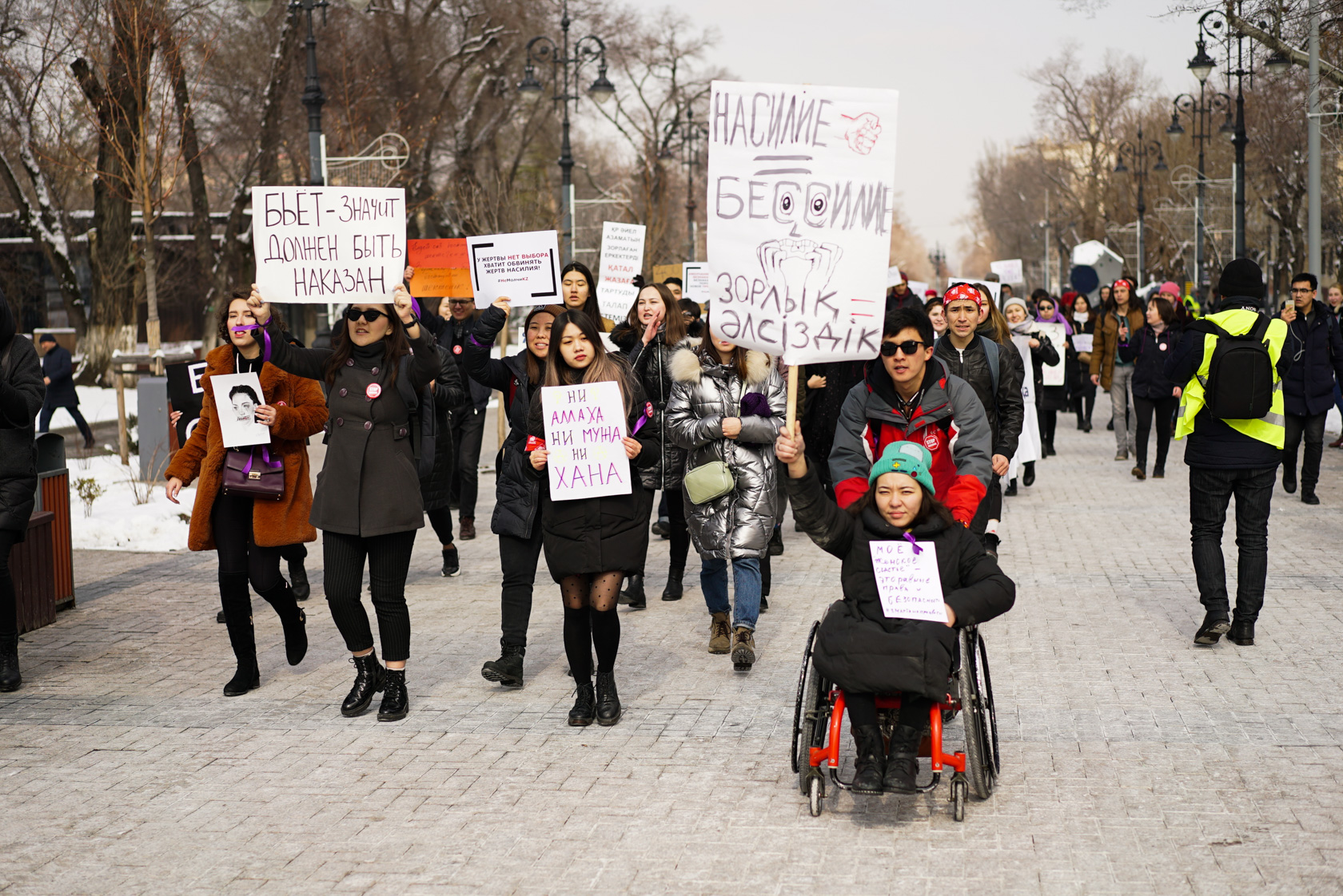 «Сегодня в этот исторический день мы, феминистские инициативы Казахстана: КазФем, Феминита, Фемагора, Фемсреда и общественный фонд "Свет" объединились, чтобы вместе заявить о правах женщин.