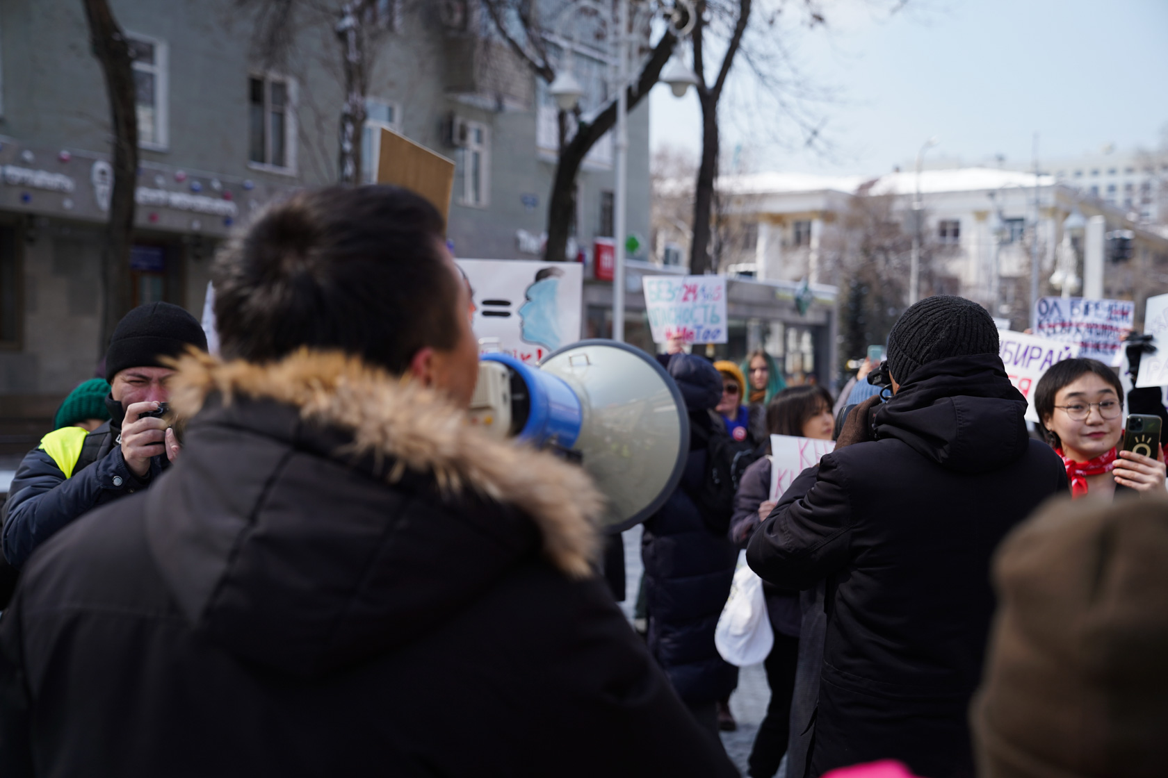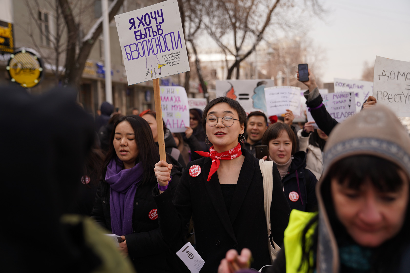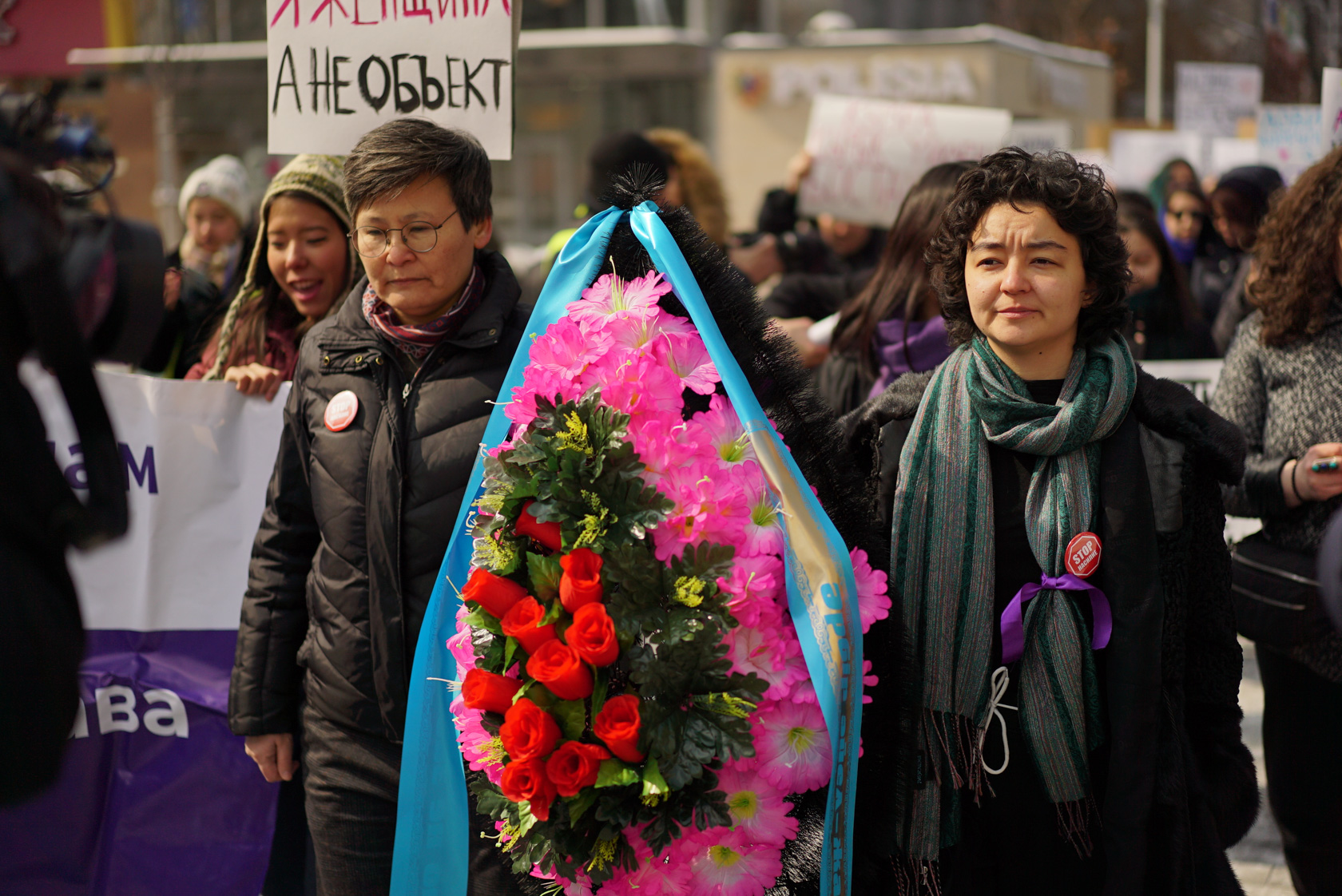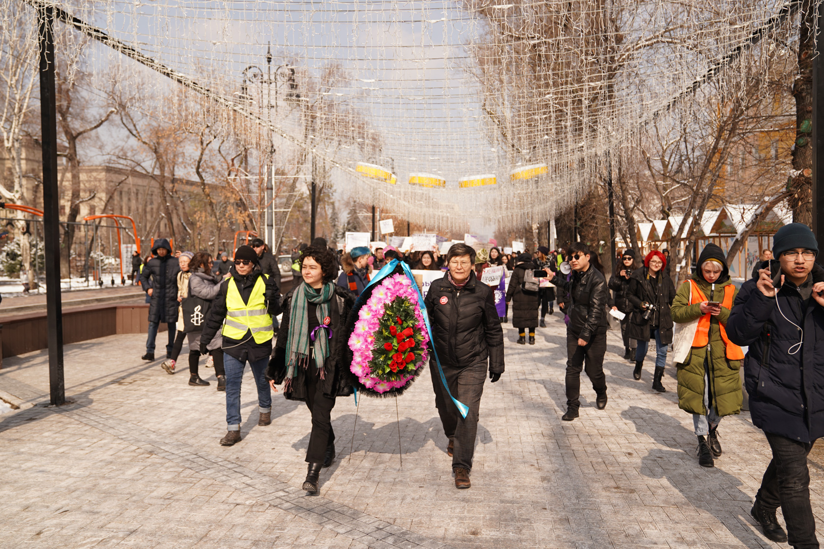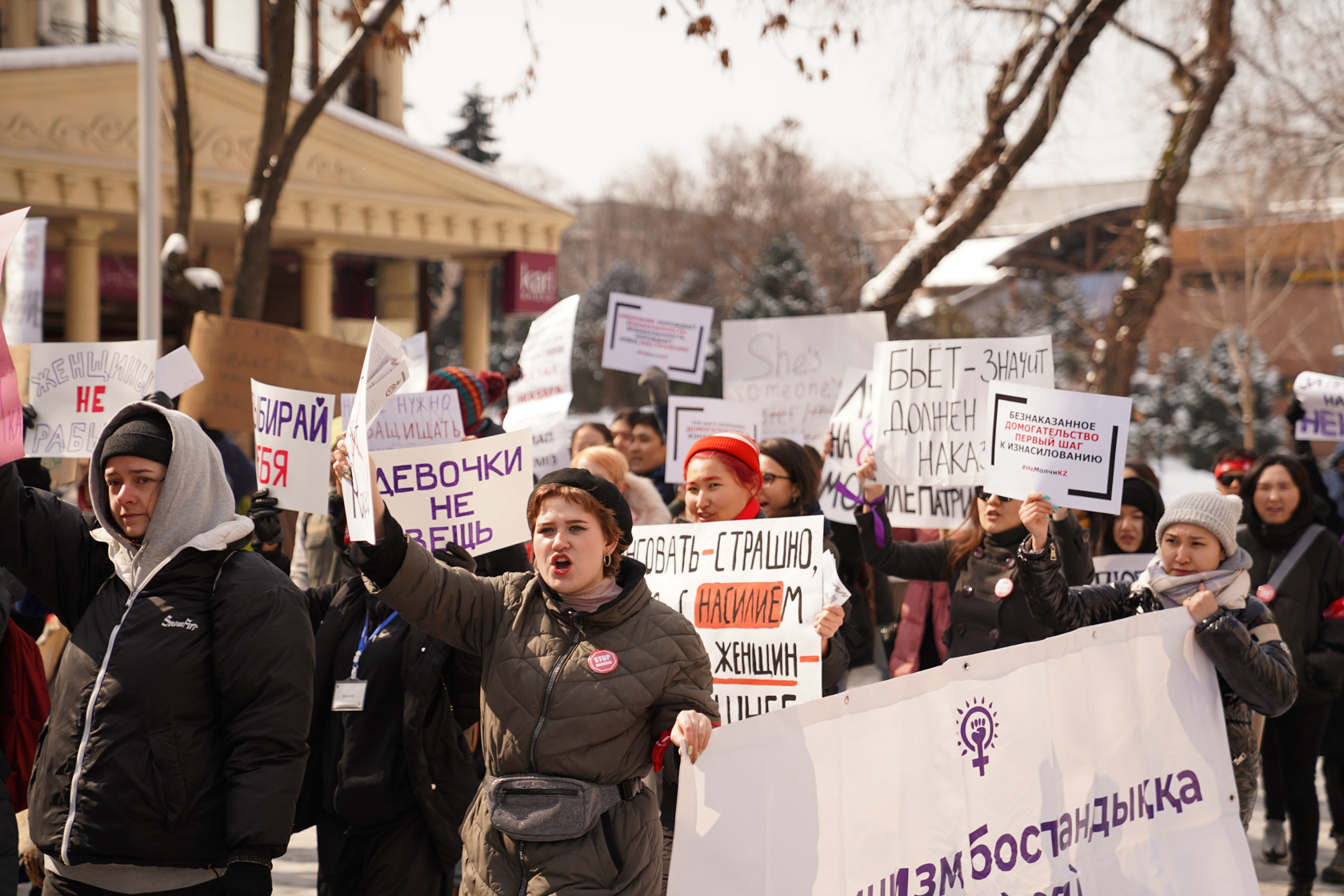 «Сегодня в этот исторический день мы, феминистские инициативы Казахстана: КазФем, Феминита, Фемагора, Фемсреда и общественный фонд "Свет" объединились, чтобы вместе заявить о правах женщин.