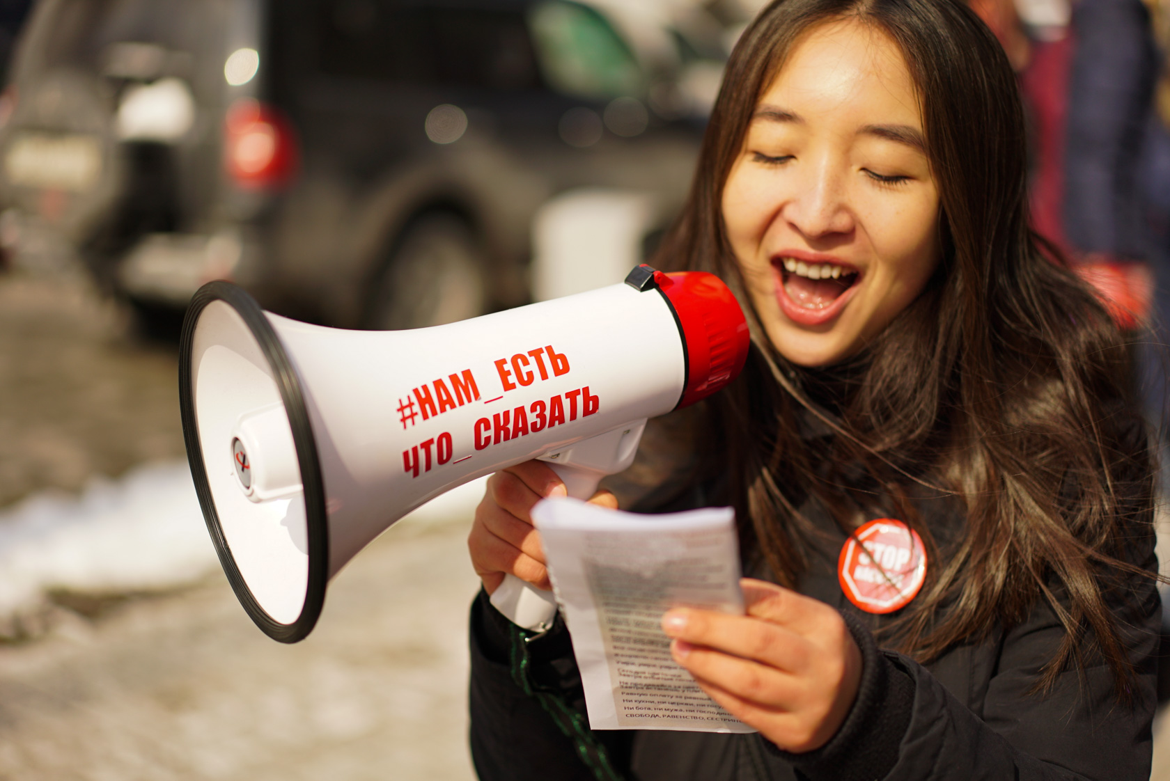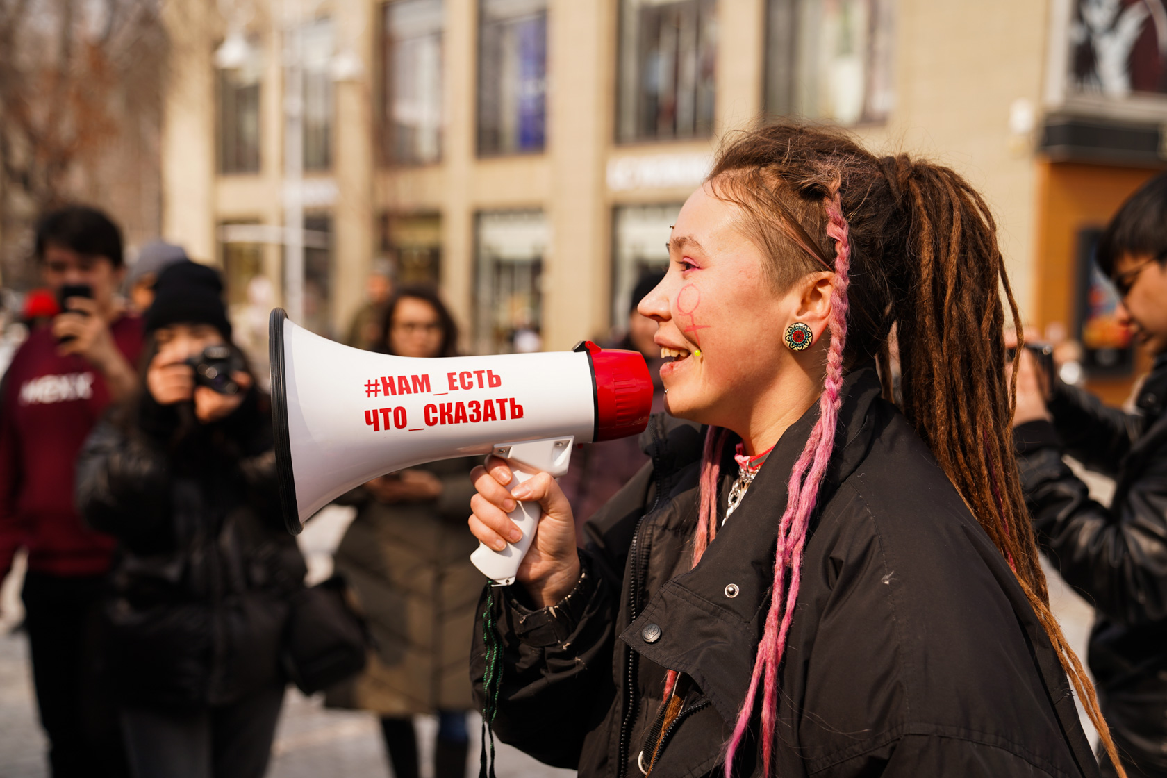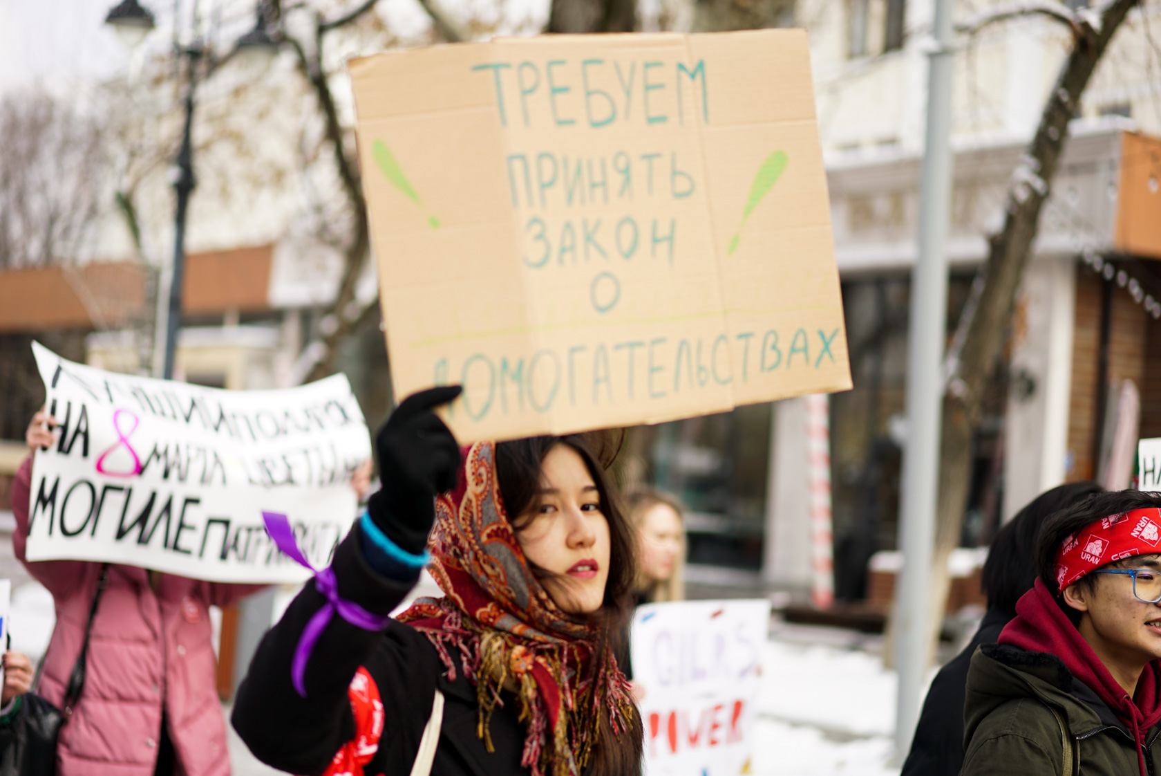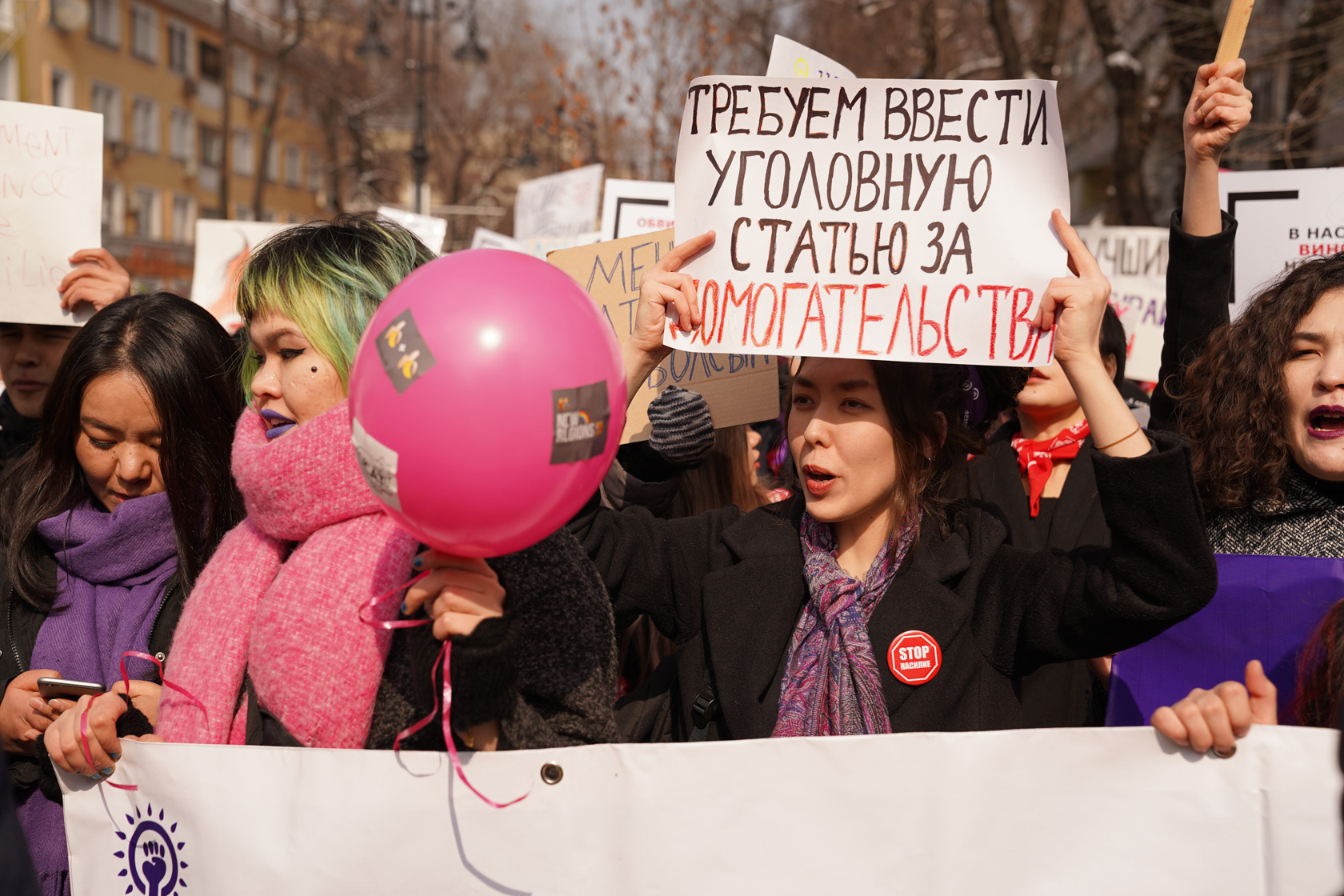 «Сегодня в этот исторический день мы, феминистские инициативы Казахстана: КазФем, Феминита, Фемагора, Фемсреда и общественный фонд "Свет" объединились, чтобы вместе заявить о правах женщин.
