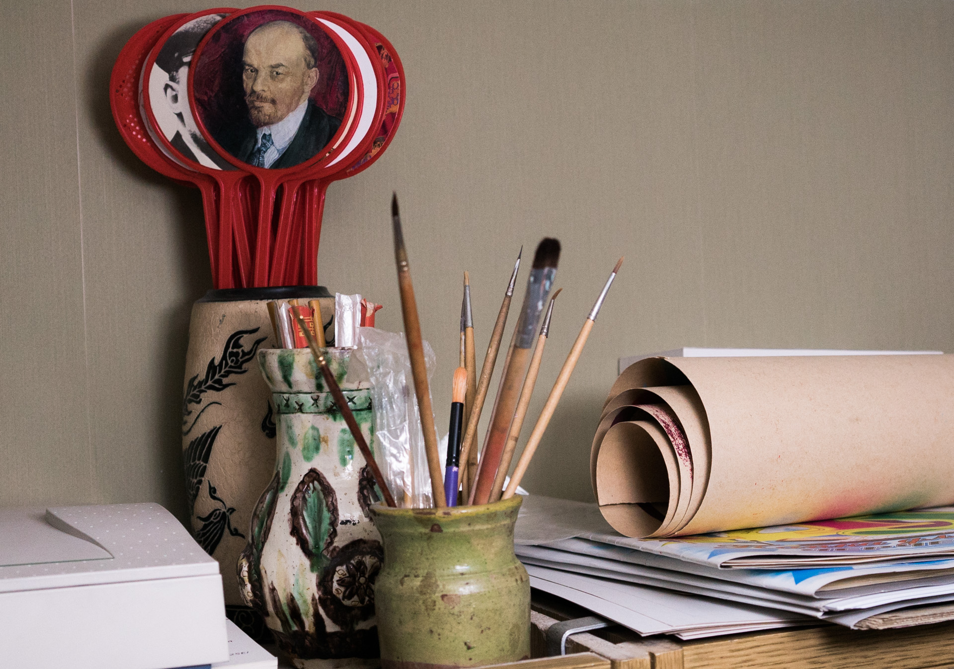 В Оше, конечно, никто этого не понимал. Когда в Москве я пришел в горком графиков и принес «мухобойки» с лицами вождей, меня оттуда выгнали, сказали, что я провокатор, что я хочу, чтобы закрыли горком и так далее. А когда я сейчас выставил эти мухобойки на своей персональной выставке, пришли коммунисты и начали возмущаться, писать что-то. Даже просто ребята, художники, говорили: «Как ты смеешь?» И тут я понял: а в те годы меня бы точно в психушку упекли.