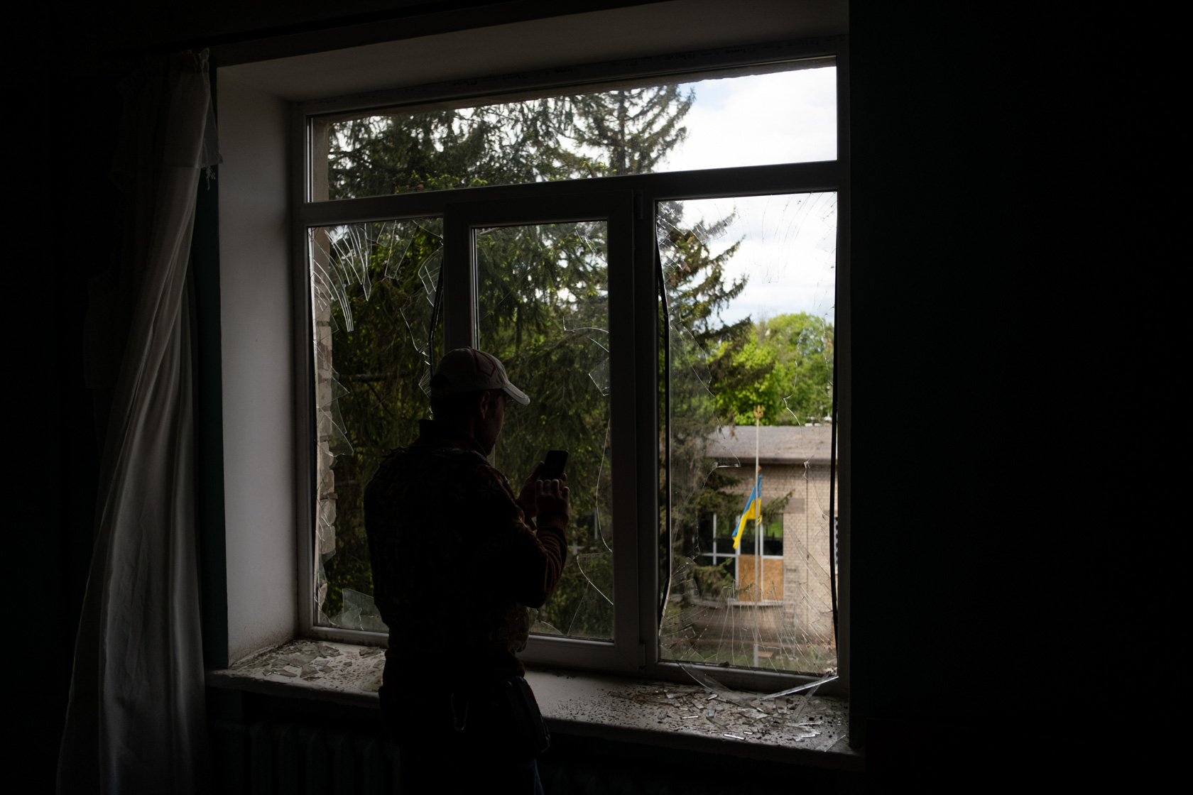 Директор Александр Гряник заводит меня в единственную уцелевшую комнату — светлицу-музей, который школьники создали своими руками: «Светлица невредима, а значит, россиянам не удастся забрать у нас нашу культуру. А школу мы отстроим, еще лучше станет!»