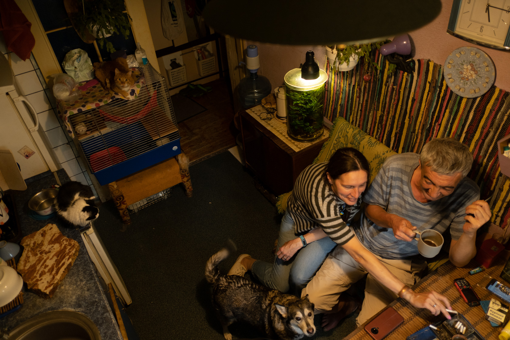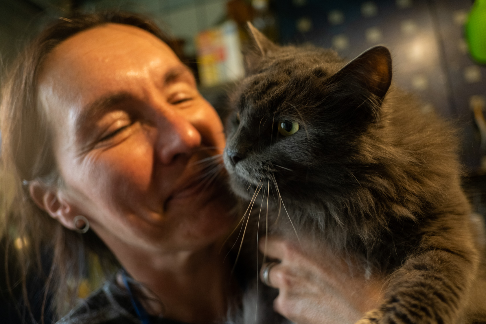 Виктория Герасименко, гражданский парамедик, до войны занималась ландшафтным дизайном и работала на благоустройство района. Сейчас Виктория Герасименко с супругом устроили у себя дома целый зоопарк: коты, собаки, попугаи, хорек и крыса, а в придачу еще и рыбки — почти всех этих животных они спасли во время боевых действий. «Я люблю, когда много жизни вокруг. Пусть жизнь побеждает смерть», — с блеском в глазах говорит Виктория.