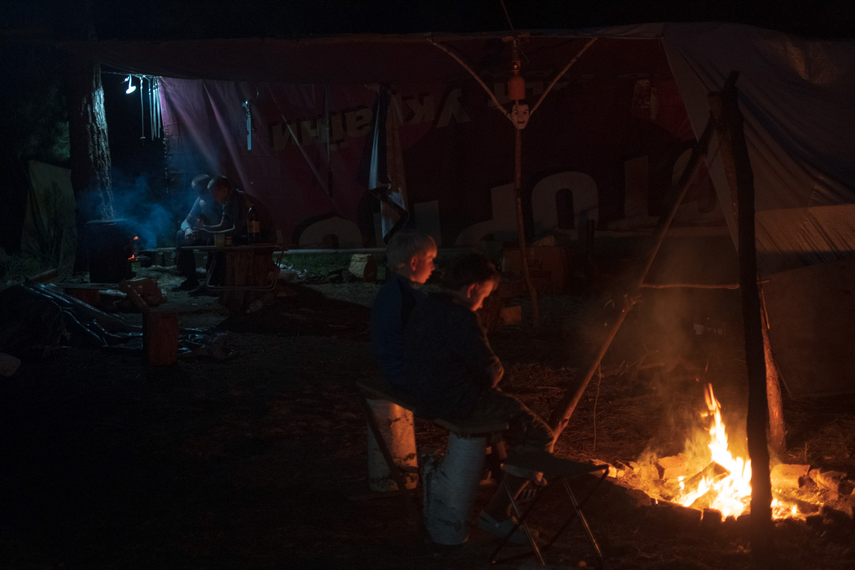23 августа, в день города Харькова и день флага Украины, мы встретились с волонтерами у лесной речки, в импровизированном летнем лагере, который они организовали: «Этот лагерь мы просто придумали для себя, потому что за несколько месяцев такого круговорота начали выгорать. Напряжение, ссоры... Ну и подняли клич по району для родителей с детьми, чтобы они смогли отдохнуть», — рассказывает организатор волонтеров Андрей Тагаев.