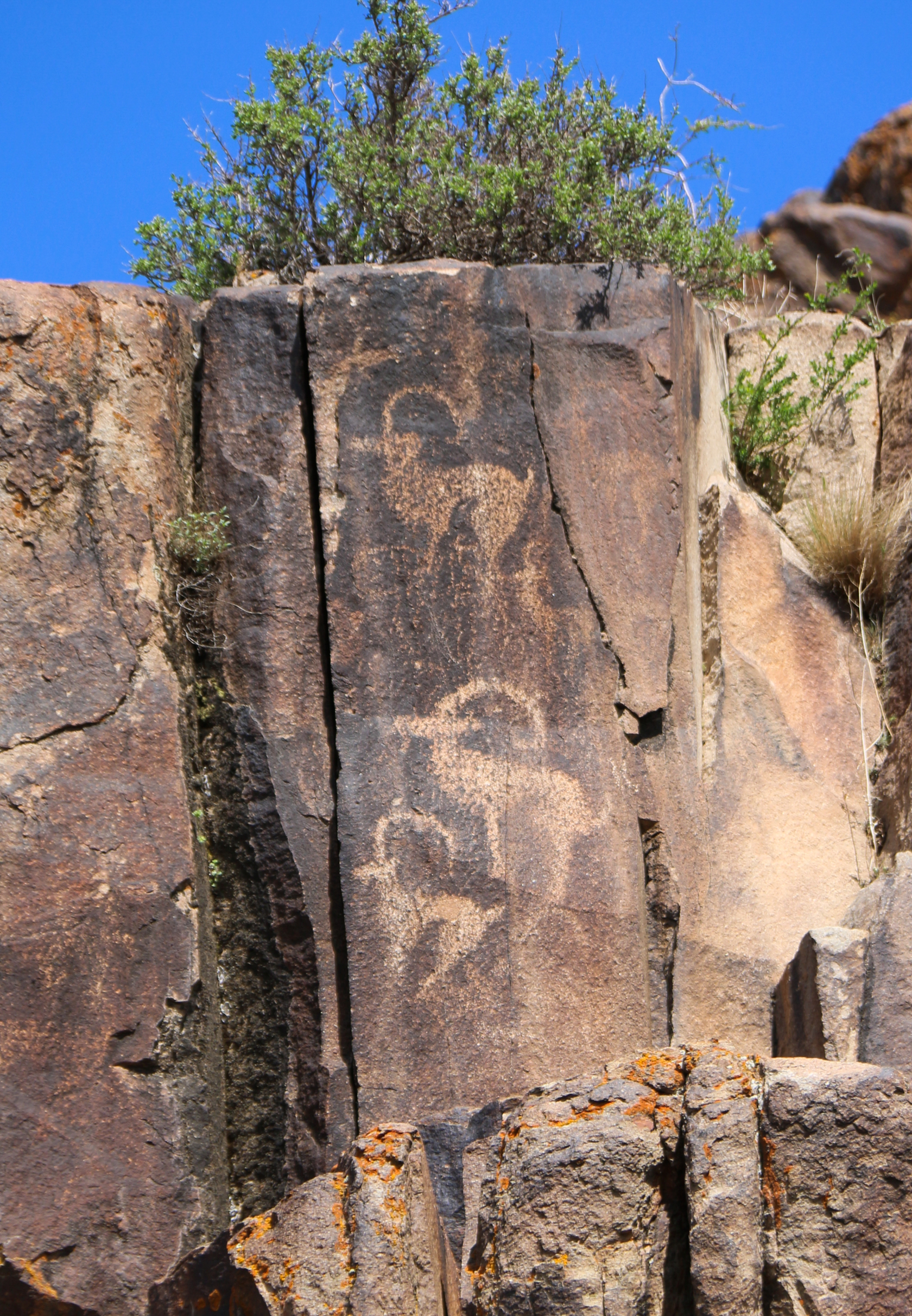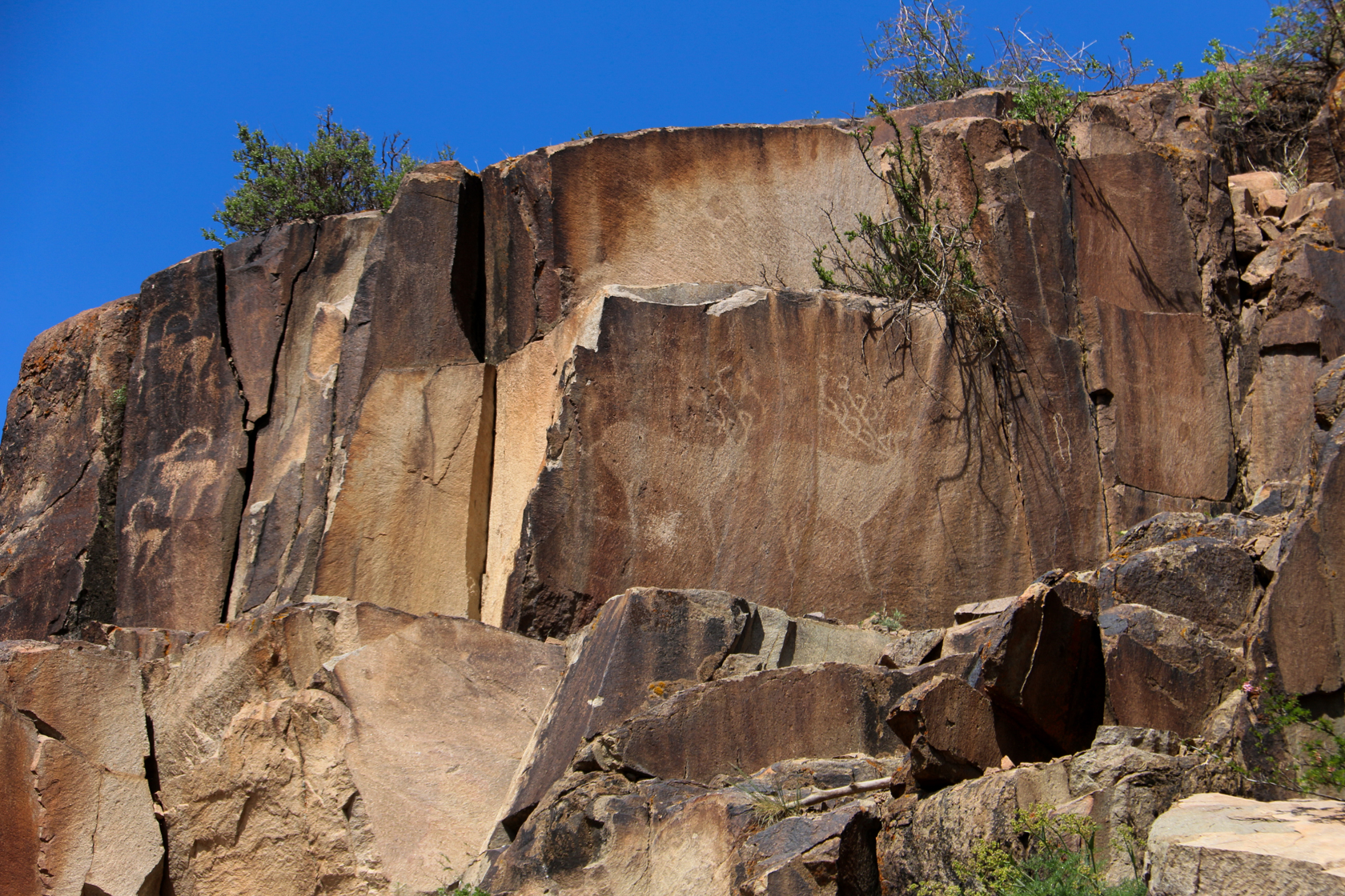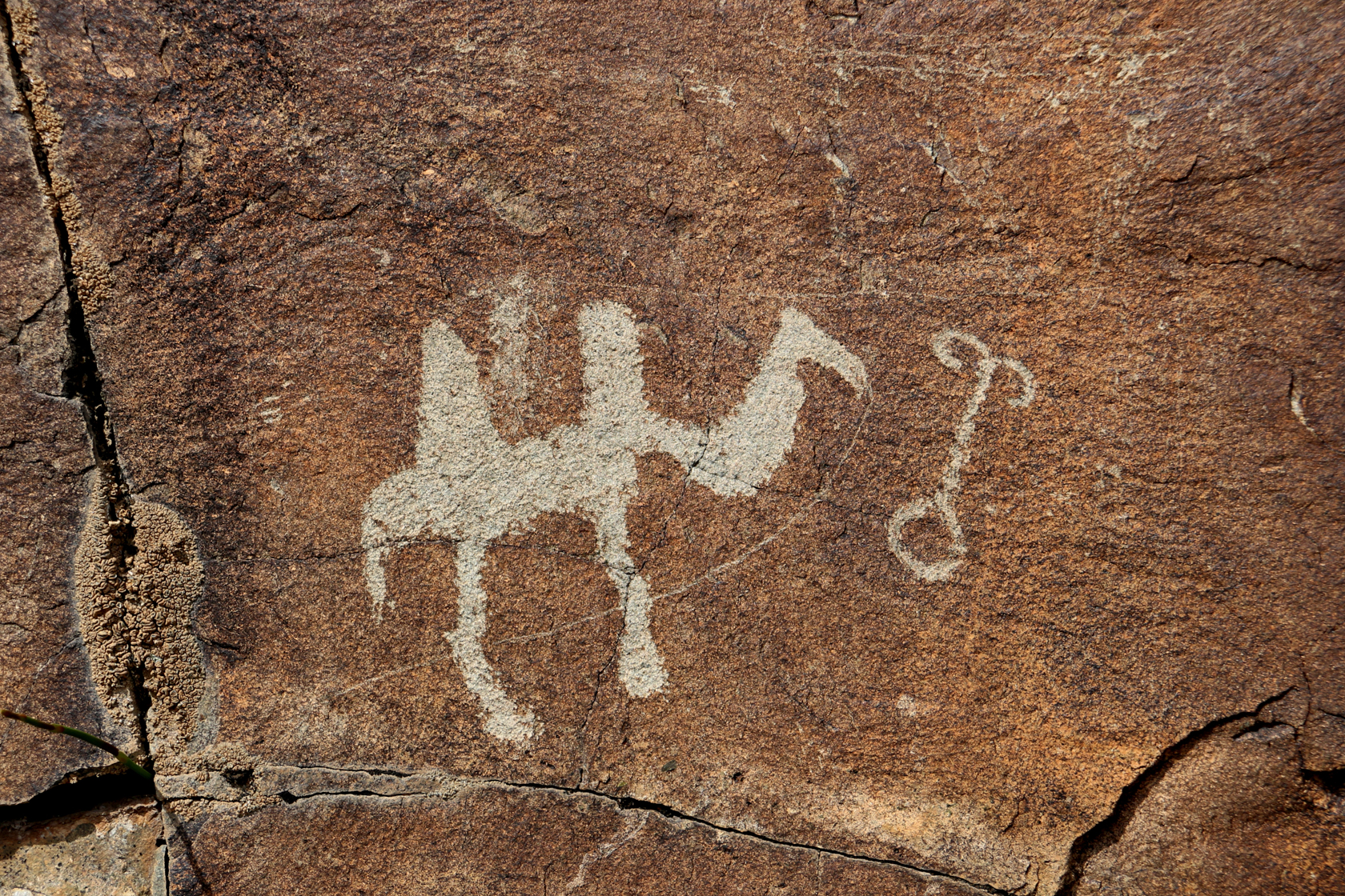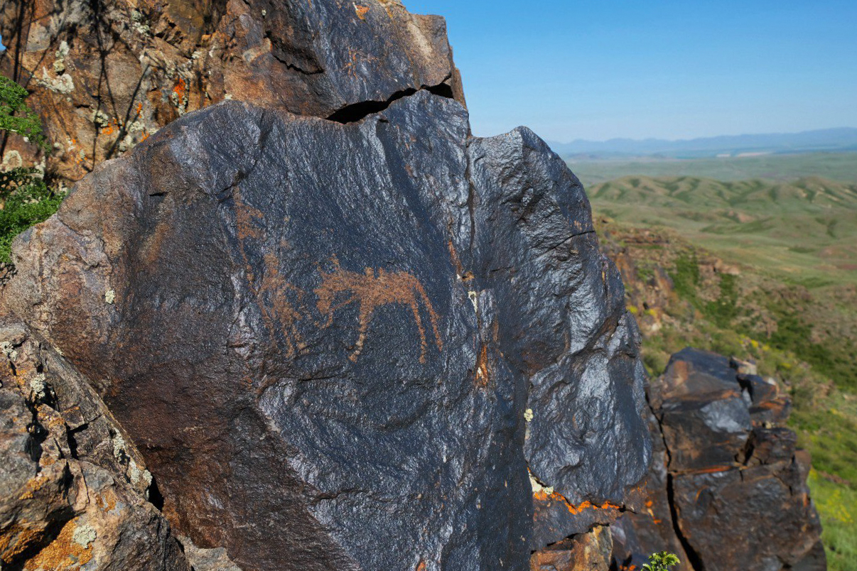 Мне несколько раз довелось поучаствовать в экспедициях, но я оказалась не такой удачливой в охоте, как более опытные участники. Моя добыча — три-четыре небольшие сцены с верблюдами и всадниками и множество одиночных изображений рогатых животных — горных козлов-теков и горных баранов-архаров. Археологи ласково называют их «козликами». Рисунков козликов в Архарлы множество. Ольга Гумирова объяснила, что и в Архарлы, и в других местах они чаще всего выполняли роль дорожных знаков, указывая древним людям дорогу к святилищу. Есть своя логика в расположении таких петроглифов. Более того, оказывается, у древних дорожных знаков есть своего рода синтаксис...