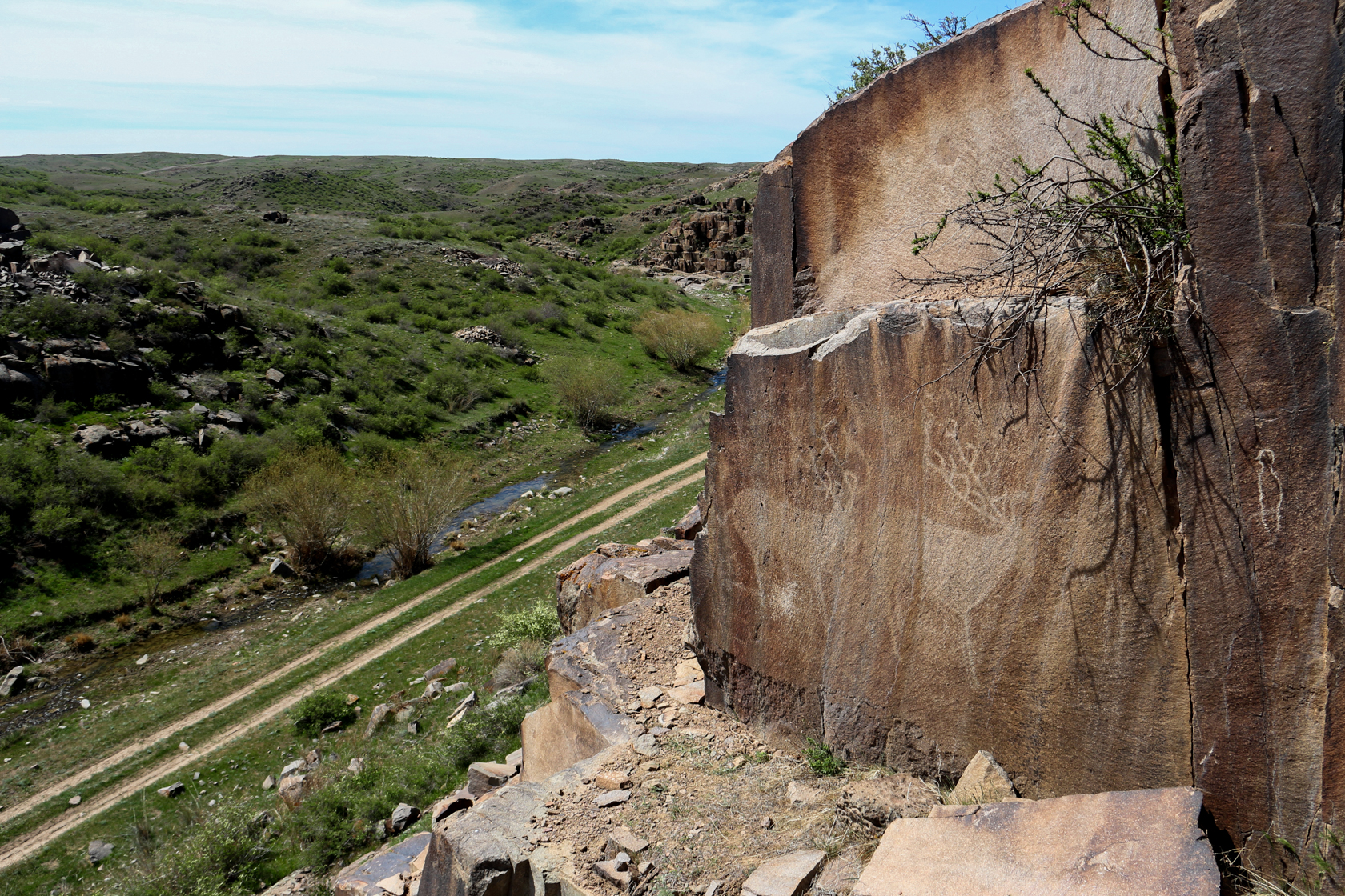 С местным руководством пару лет назад обсуждался проект туристического парка кочевой культуры, были получены обещания, но карьер продолжал работать, перемалывая историю. Пишутся посты в соцсетях и статьи в прессе, снимаются видеоролики, был сделан депутатский запрос, но бизнес-интересы одного отдельно взятого бывшего районного акима сильнее. Крупное святилище с рисунками культового значения уже разрушено до основания, превратилось в щебень и плитняк. На большой территории снесены до основания сопки. Были ли на них рисунки − теперь не установить. Сейчас карьер вроде бы приостановлен, буквально в 50 метрах от еще сохранившихся рисунков.