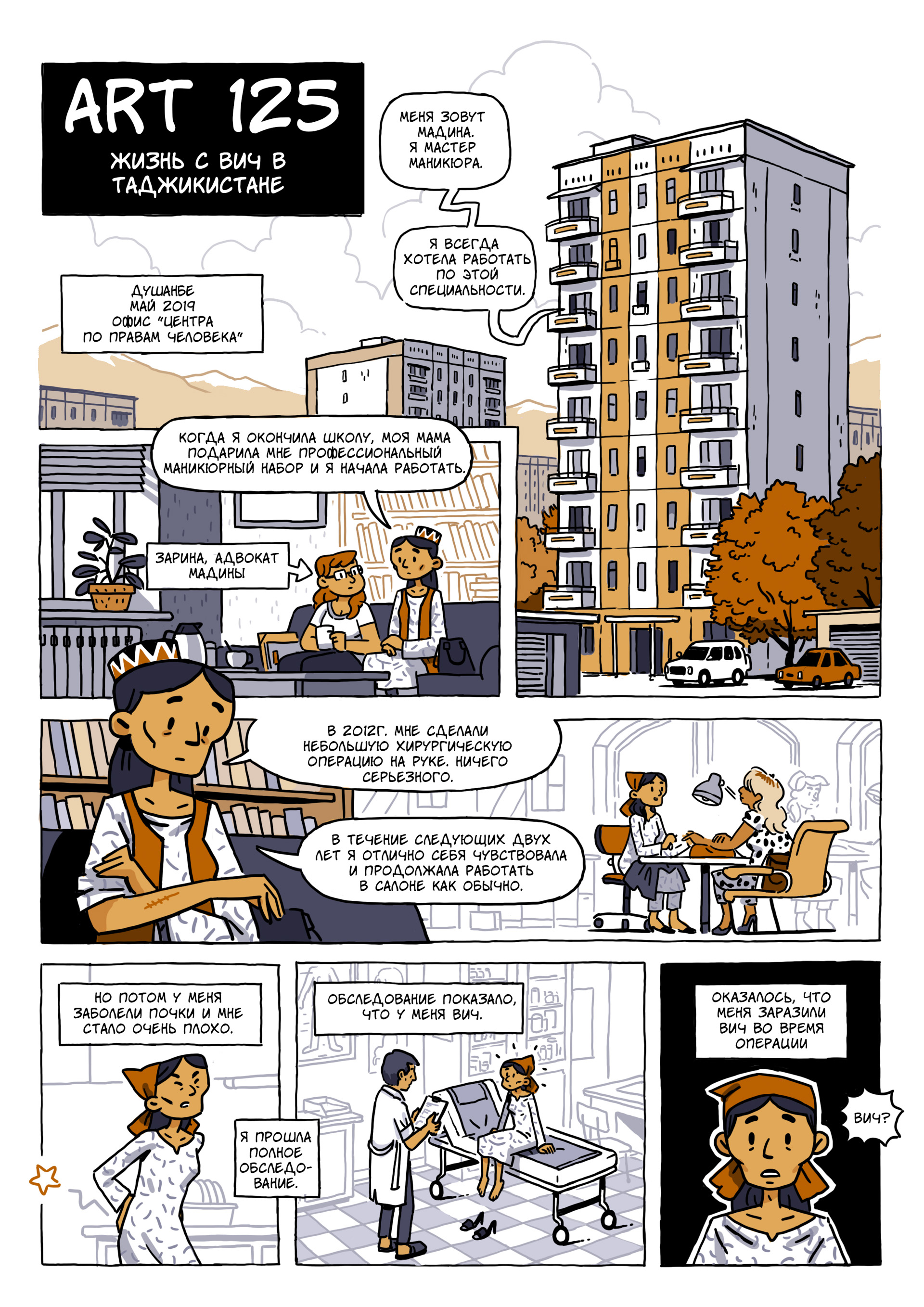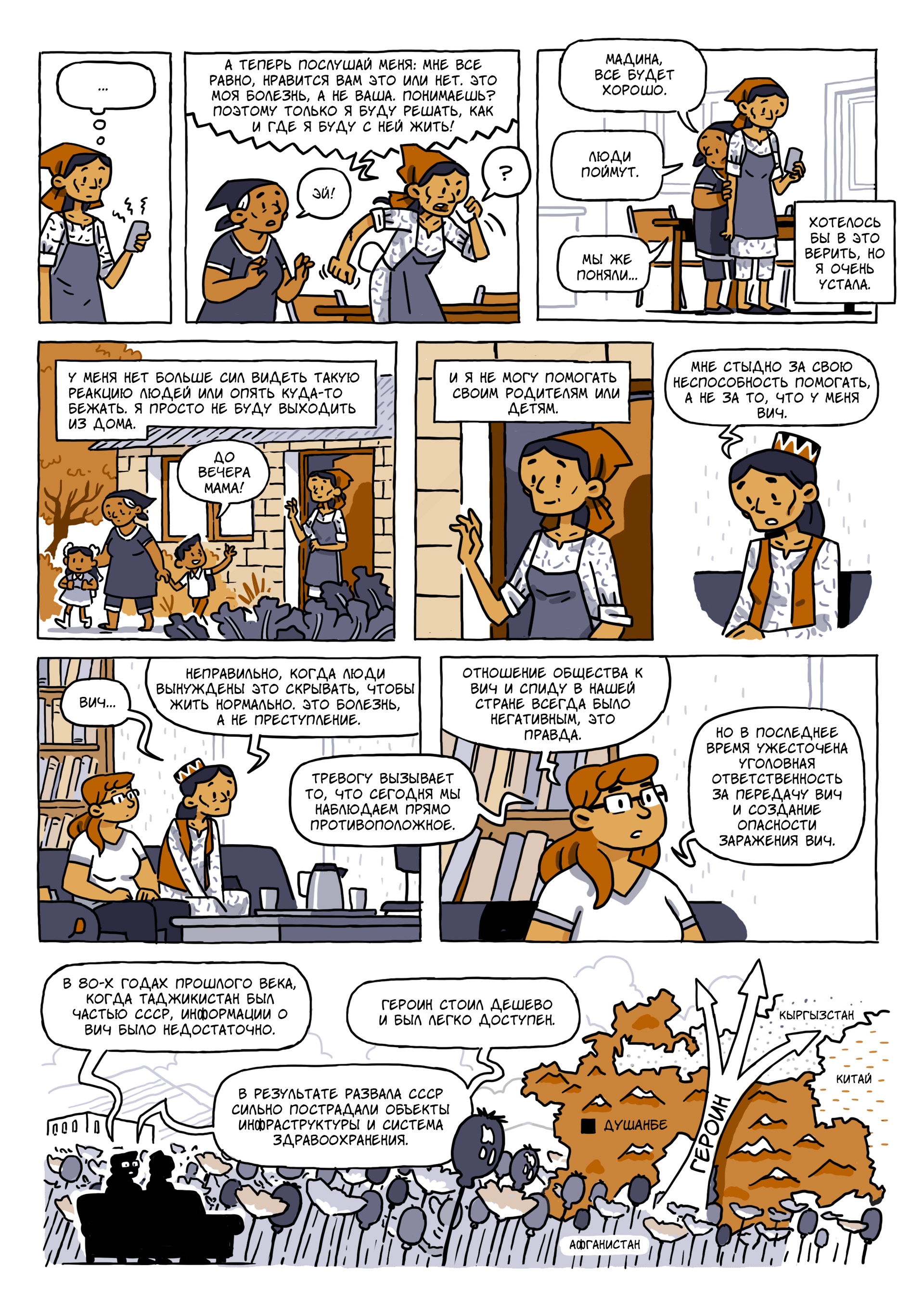 В этот день Adamdar/CA публикует графическую новеллу, созданную художником Николя Журну для UNDP Eurasia (ПРООН Евразия). Новелла рассказывает о проблемах, с которыми сталкиваются люди, живущие с ВИЧ в современном Таджикистане, а также о том, как на фоне усиливающейся криминализации ВИЧ возвращается старый государственный закон.