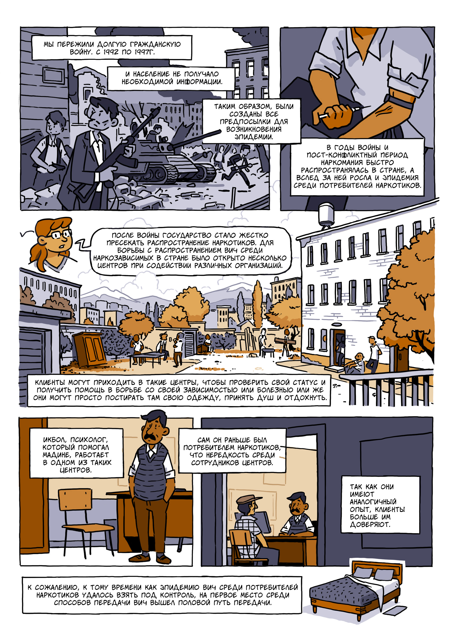 Мы (отдел коммуникаций в UNDP Eurasia) решили обратиться к художнику, работающему в жанре графической новеллы, для того, чтобы отразить всю сложность проблемы и в то же время защитить людей, чьи истории мы хотели рассказать.