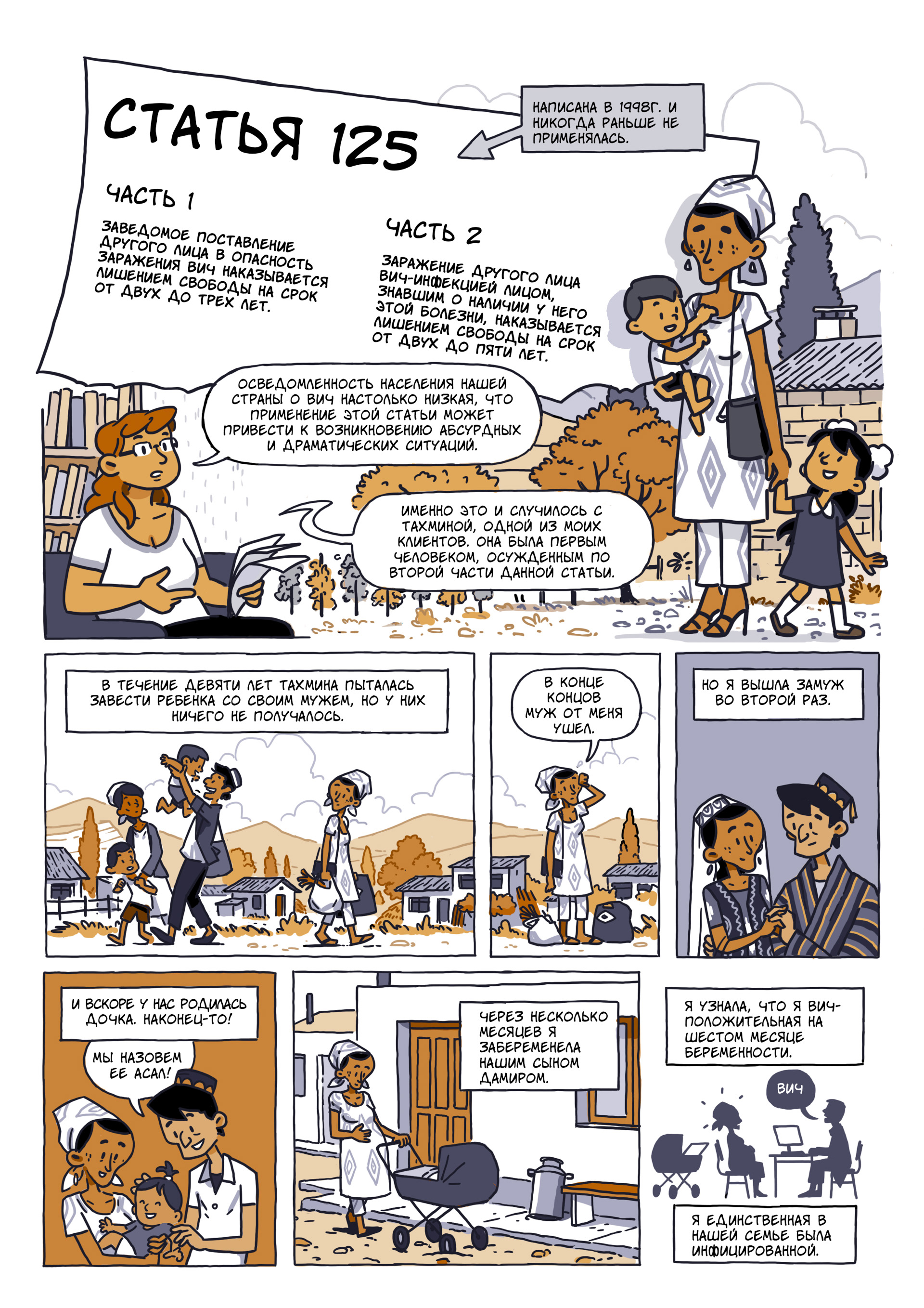 «В этом году в Таджикистане женщина была приговорена к заключению в тюрьме за заражение своего ребенка ВИЧ. Приговор стал результатам возрождения старого закона, который ранее редко применялся. Но с растущей стигматизацией и криминализацией ВИЧ в Таджикистане Статья №125 снова зазвучала в судах.