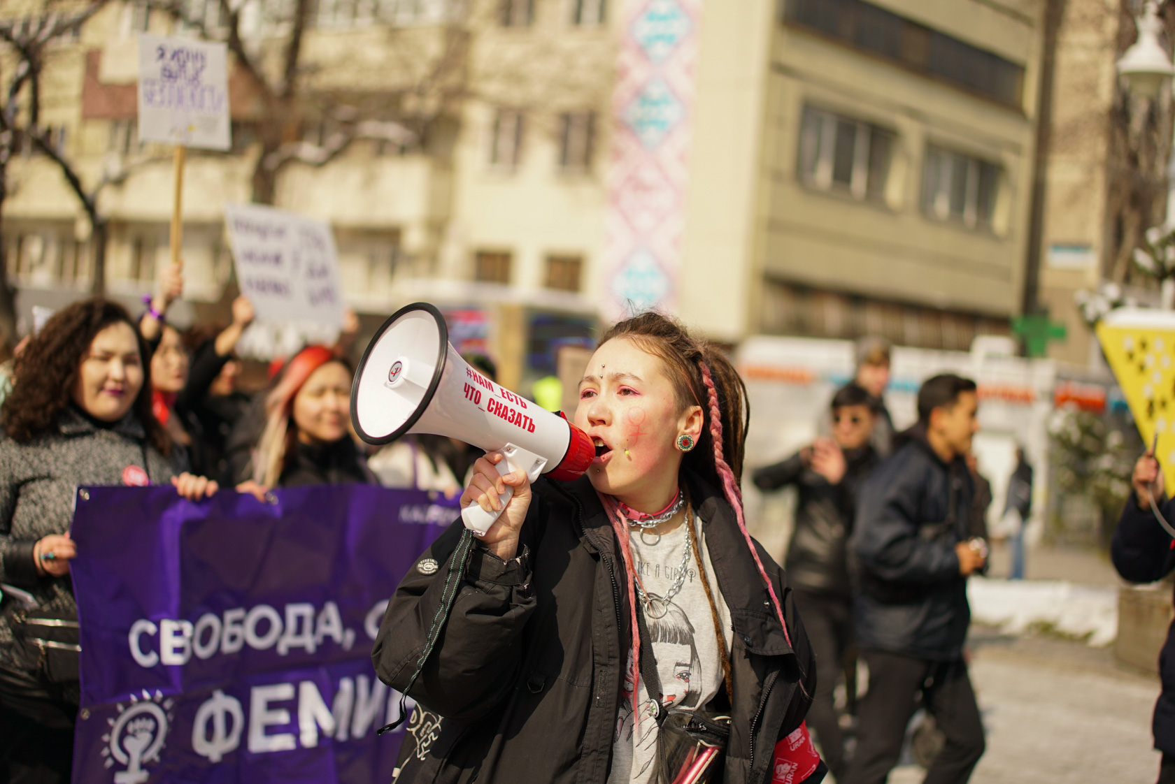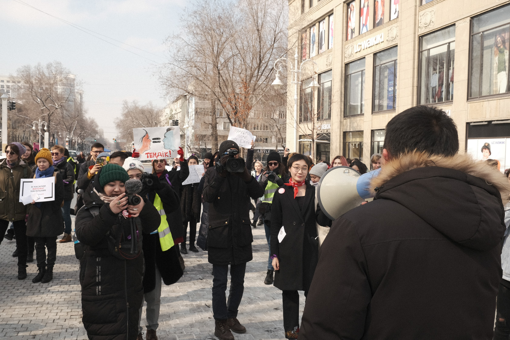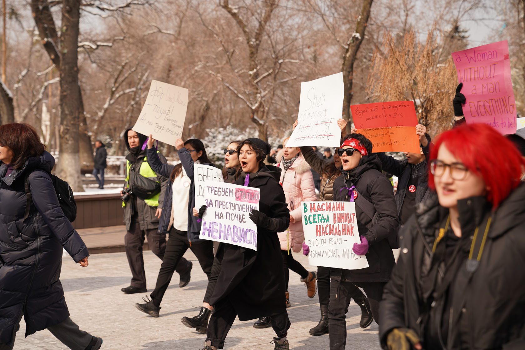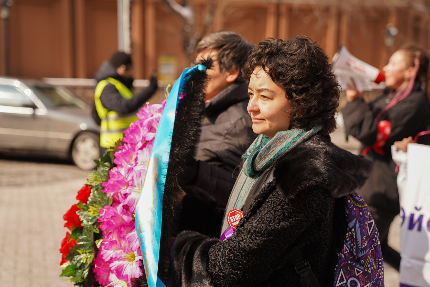 «Сегодня в этот исторический день мы, феминистские инициативы Казахстана: КазФем, Феминита, Фемагора, Фемсреда и общественный фонд "Свет" объединились, чтобы вместе заявить о правах женщин.