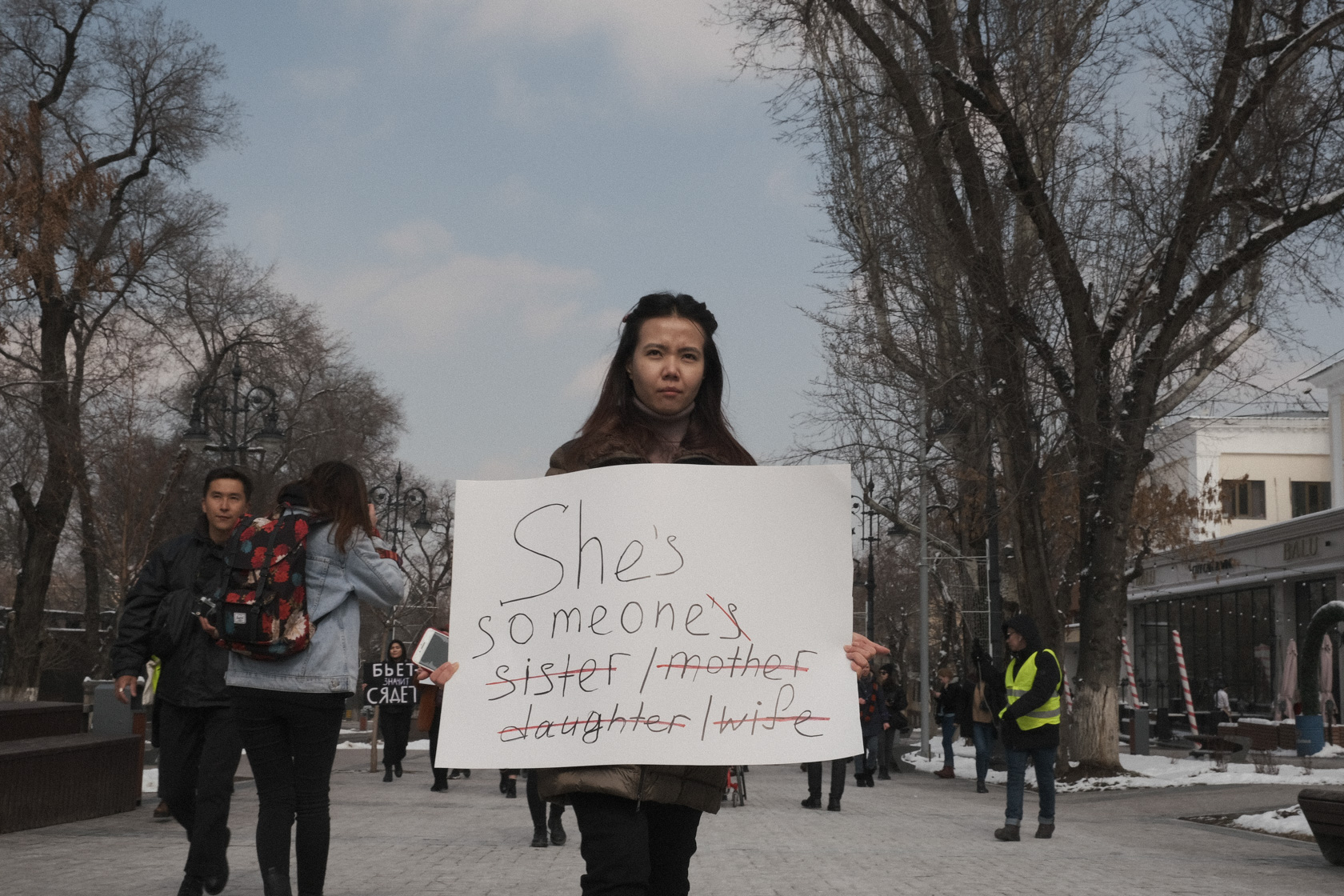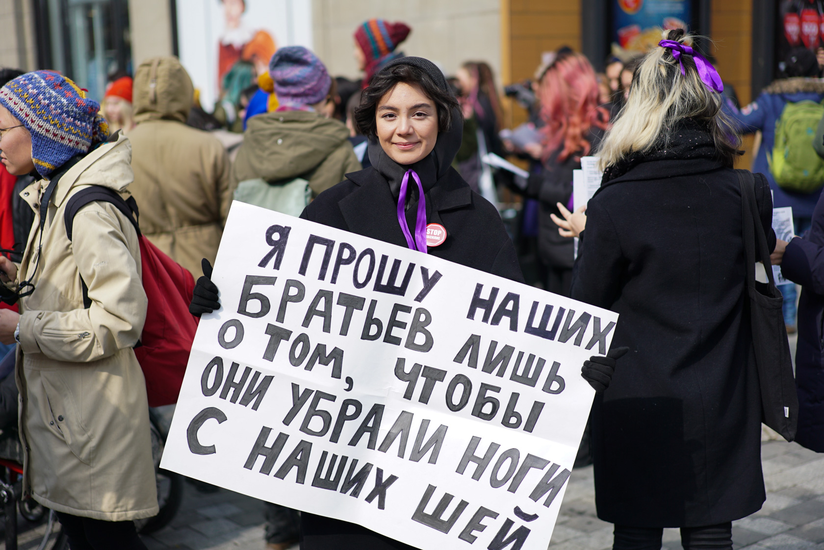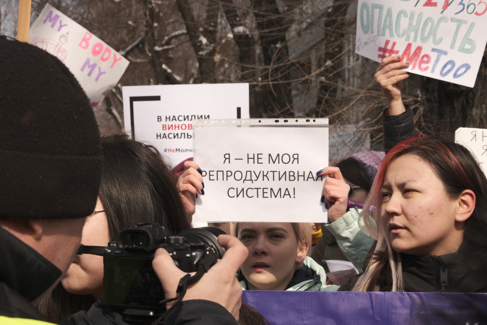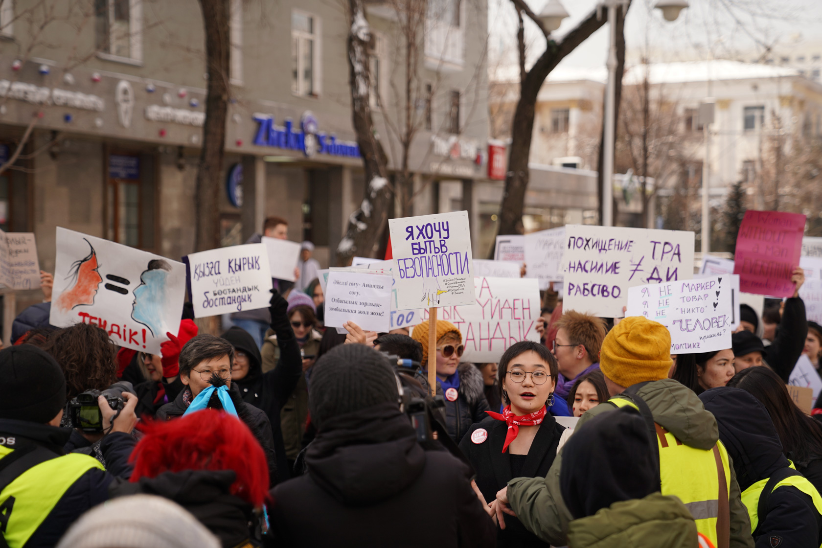 «Сегодня в этот исторический день мы, феминистские инициативы Казахстана: КазФем, Феминита, Фемагора, Фемсреда и общественный фонд "Свет" объединились, чтобы вместе заявить о правах женщин.