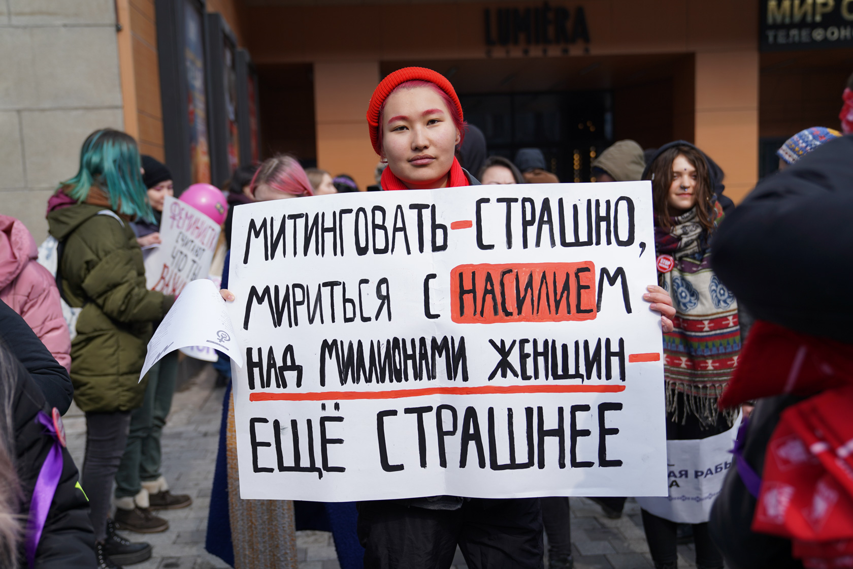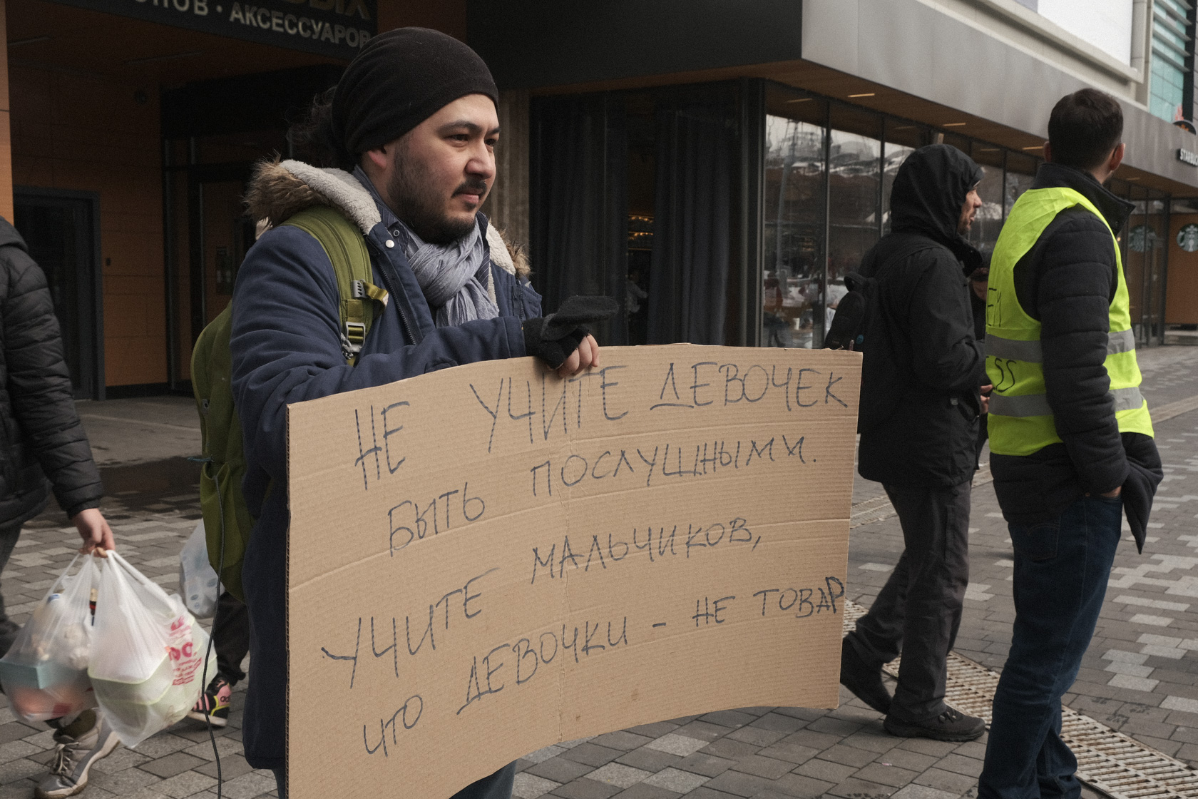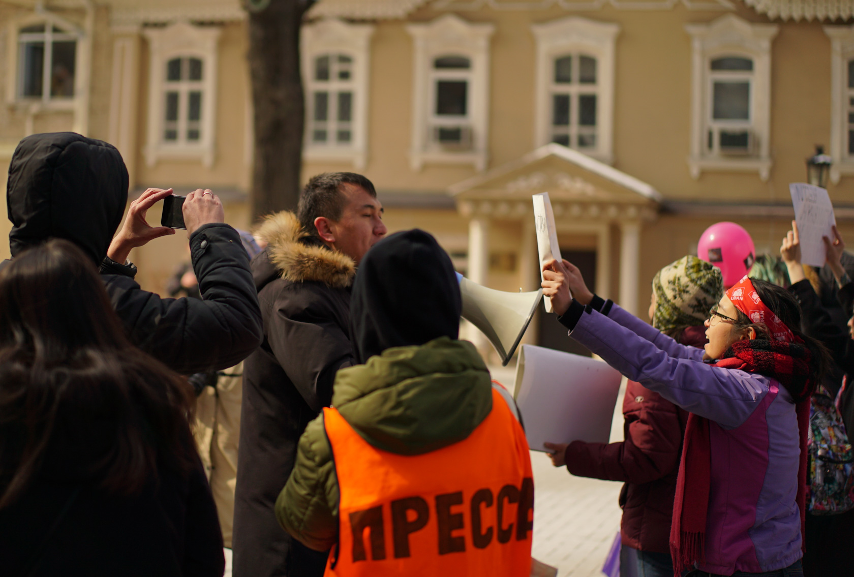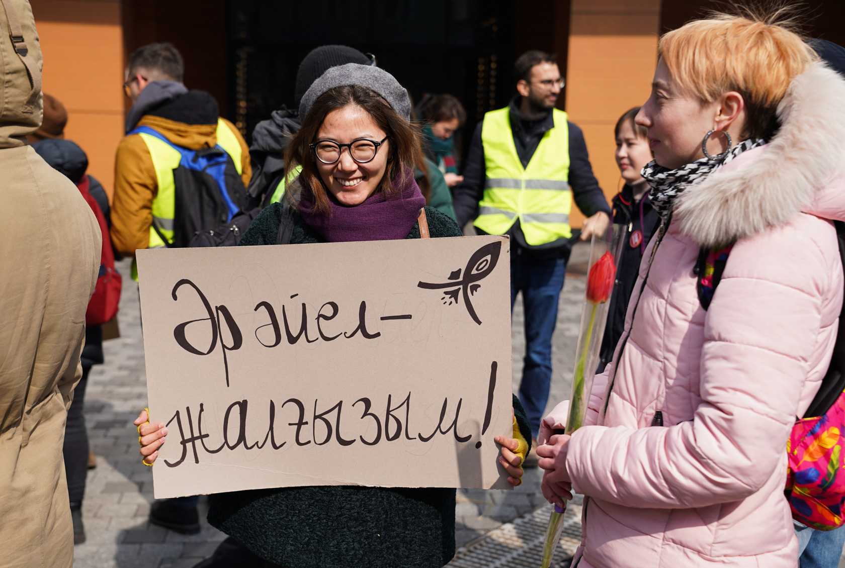 «Сегодня в этот исторический день мы, феминистские инициативы Казахстана: КазФем, Феминита, Фемагора, Фемсреда и общественный фонд "Свет" объединились, чтобы вместе заявить о правах женщин.