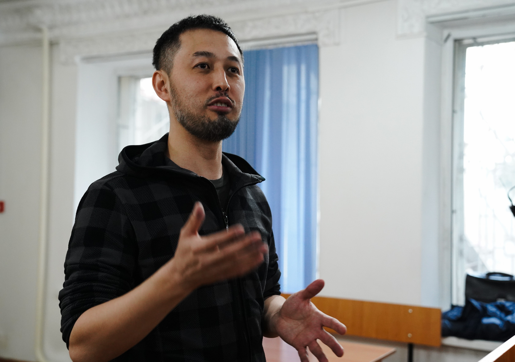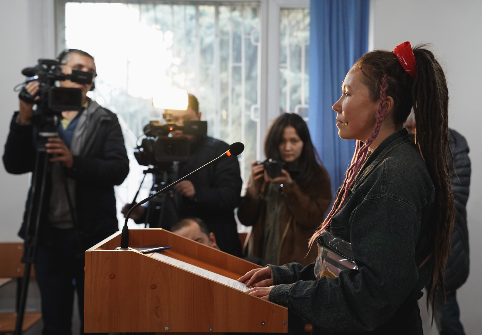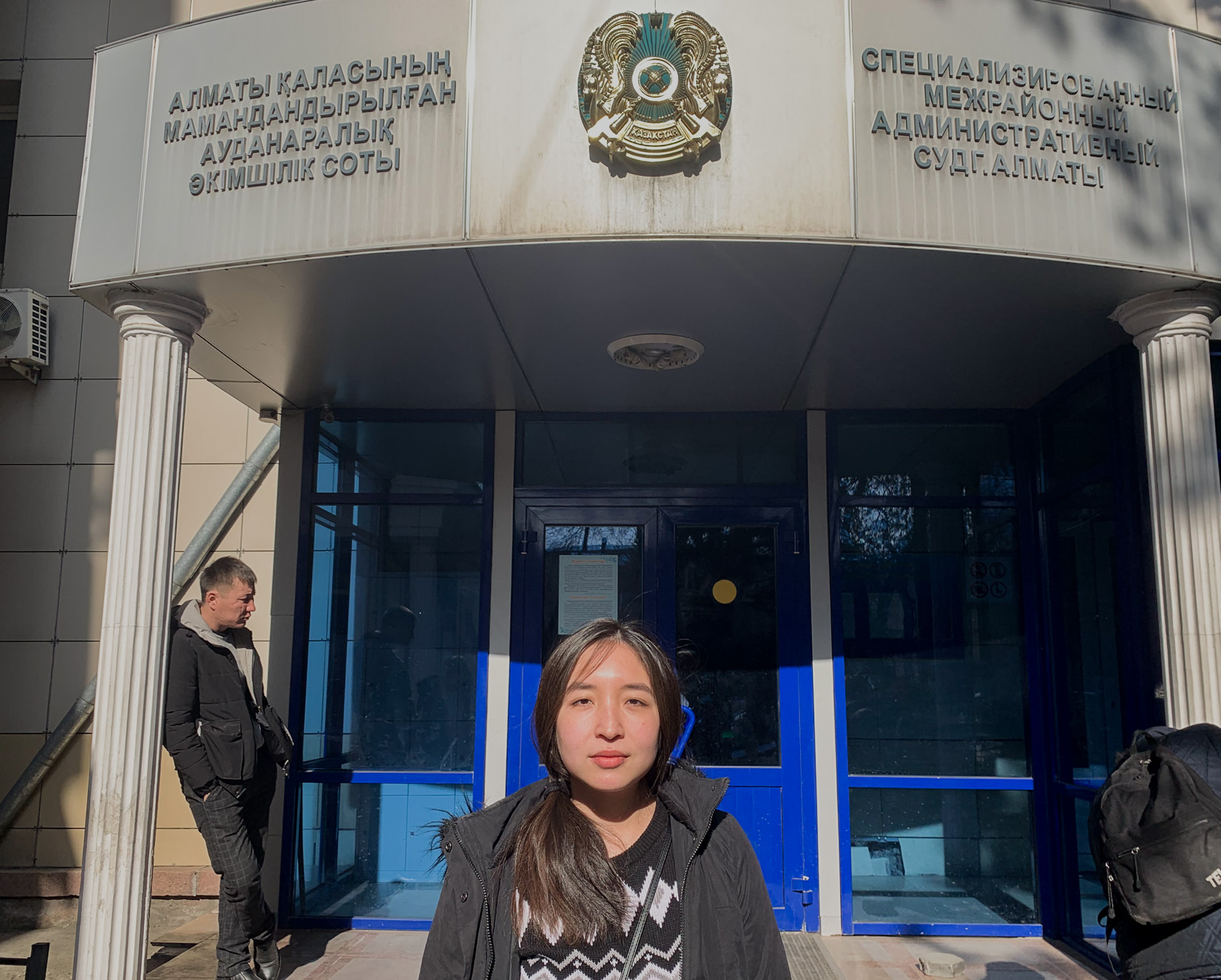 16:00 Активистов и представителей СМИ, заранее собравшихся у здания межрайонного суда, не впускают, несмотря на открытый статус заседания. Арина Осиновская вместе с адвокатом Гульхан Окаповой подают ходатайство о допущении в зал суда СМИ и других граждан в качестве наблюдателей.