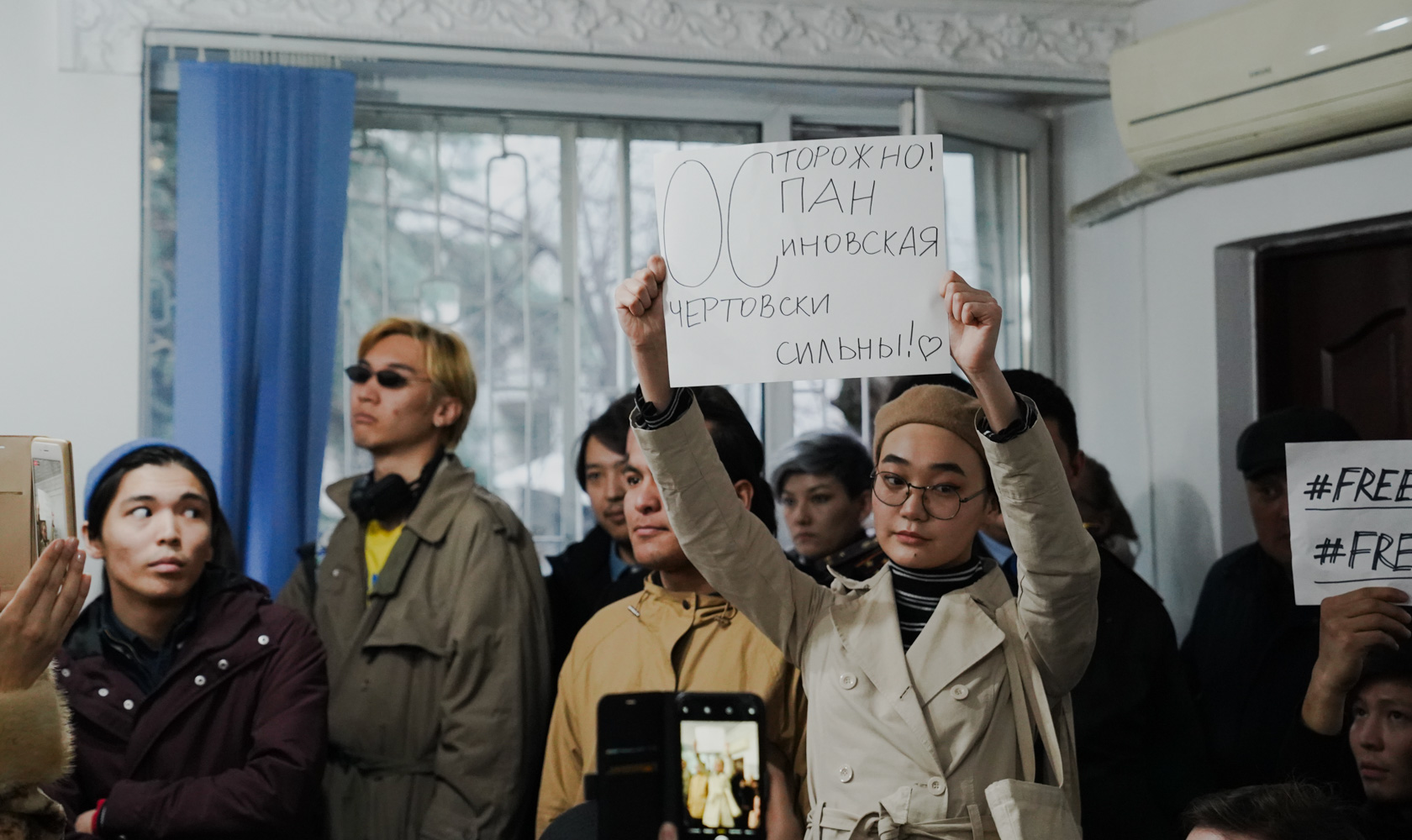 В это время в здание попадают все, кто пришел поддержать активисток. В ожидании решения собравшиеся в зале ведут оживленные дискуссии на актуальные социально-политические темы.