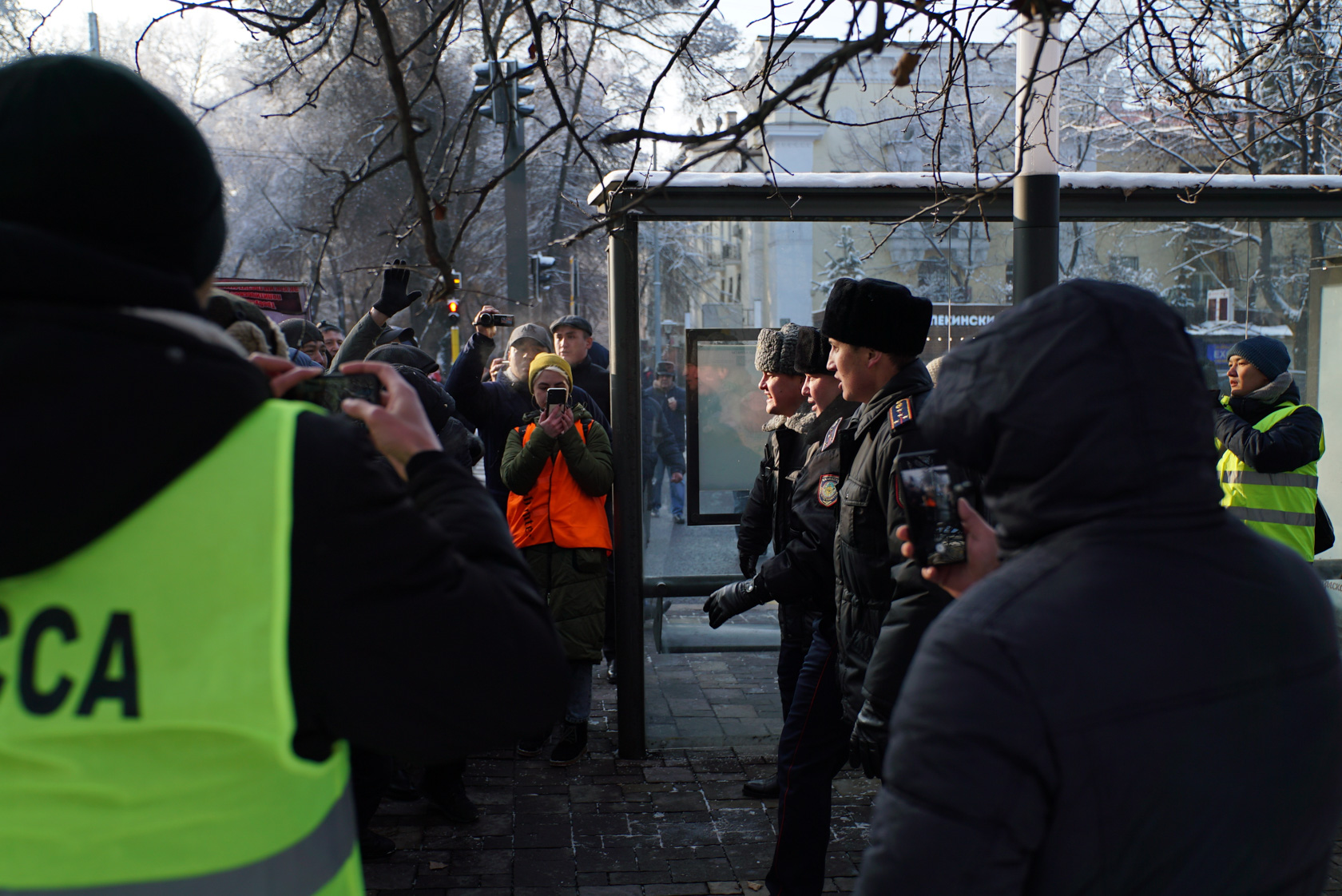 Тұтқындалудан қашқан белсенділердің бір бөлігі Астана алаңына (Ескі алаң) қарай ұмтылды. Алаң аумағын полицияның қалың күші мен арнайы көліктері, полиция мен арнайы бөлімше автобустары қоршаған.