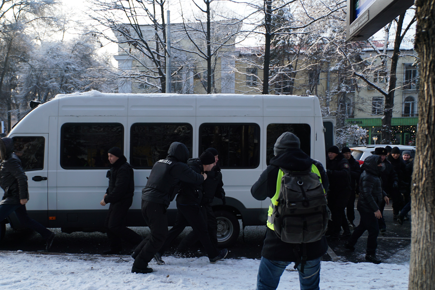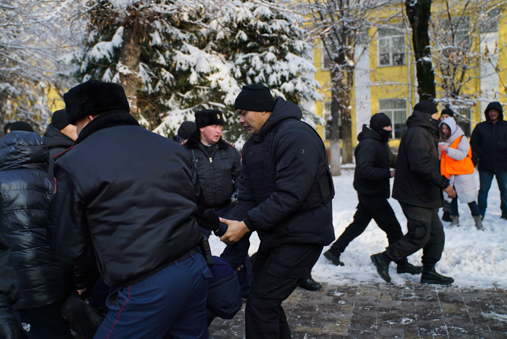 Сағат 15:20 да Абылай хан мен Қарасай батыр көшелерінің қиылысында полиция мен арнайы жасақ белсенділерді ұстай бастады. Полиция мен полиция арнайы бөлімшесі онға жуық адамды ұстады.