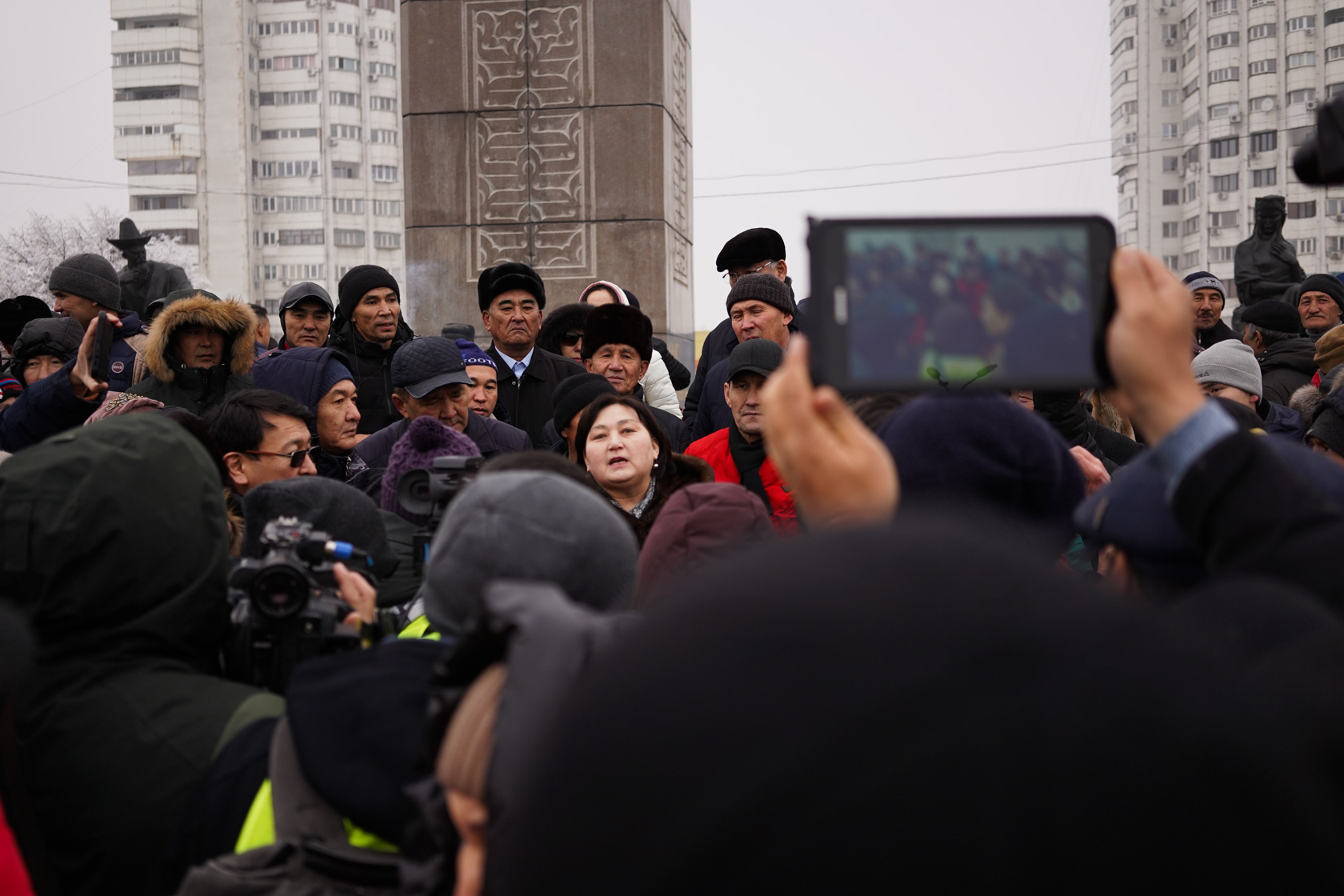 2 сағат ішінде Тәуелсіздік монументі жанына жекелеген топтар мен адамдар жиналып түрлі лозунгтар айтты. Әсіресе Қазақстанда қуғын-сүргін мен зомбылық бітсе деген, демократизация мен еркіндікке шақырған үндеу басым болды.
