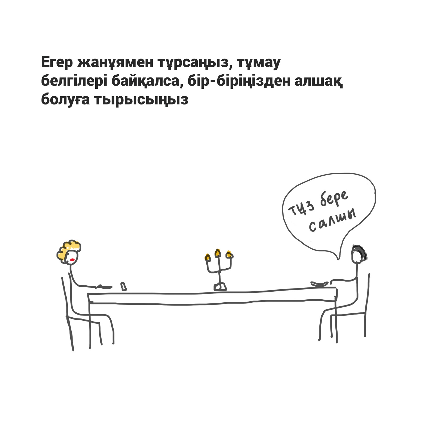 Сізге олармен бір үйде қалуға тура келсе бір-біріңізден барынша (2 метр не 3 қадам) алыс болғандарыңыз жөн.