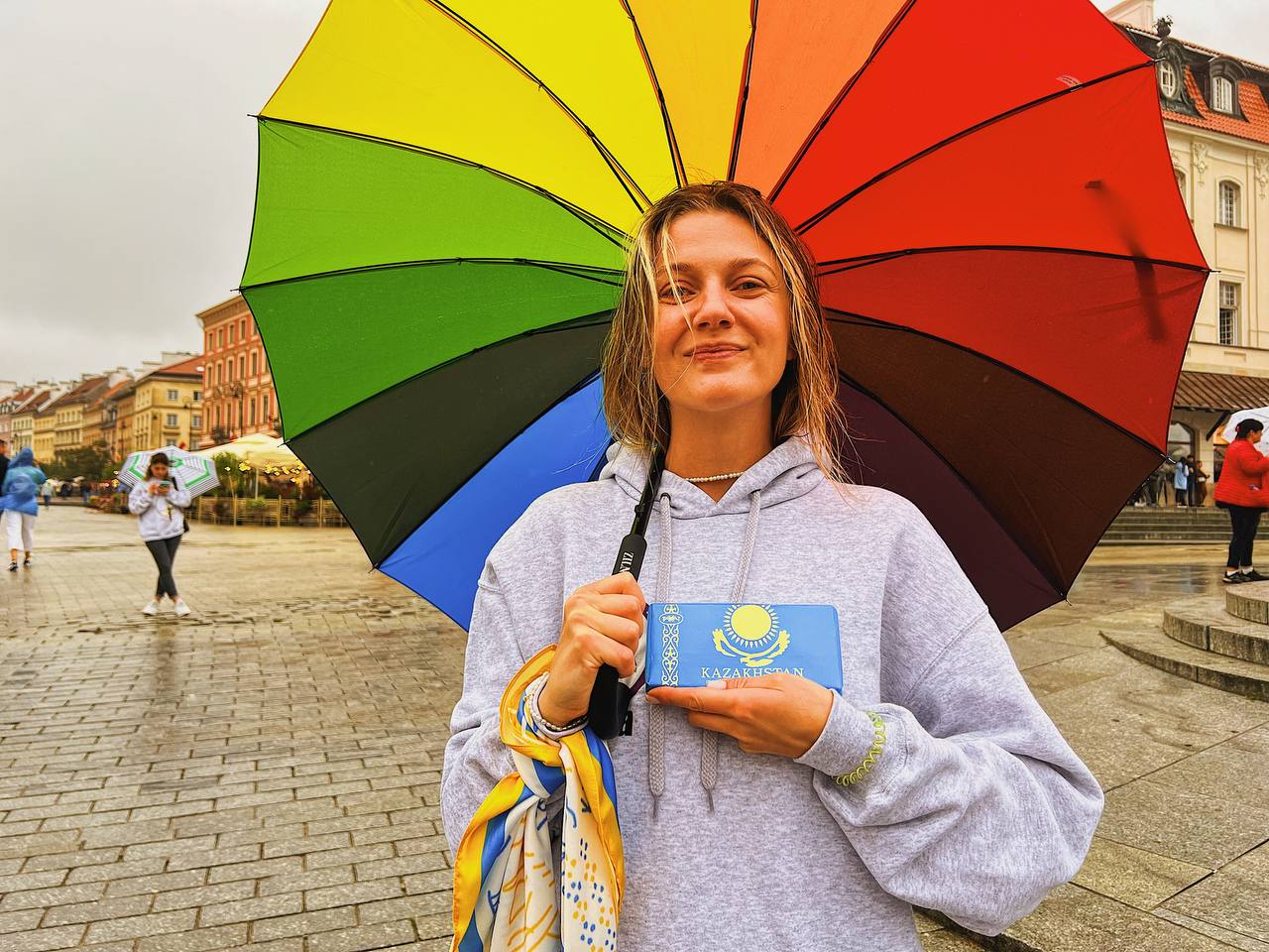 Жексенбі. Варшава. Джетлаг. Жауын. Жаңбыр тамшылары қолшатырдан сырғып түсіп, жолды жапқан тас кесектеріне барып жарылып жатыр. Король сарайы алаңы: поляк монархы Сигизмунд III мұнарасының түбінде 20-30 шақты қыз-жігіт топтасып тұр. Олар жарты ай бейнесінде тұр. Мен жарты айға жақынырақ келдім. Қуатты әрі әдемі әйел үні төгіліп жатыр. Қара киініп алған жігіт акустикалық гитарада ойнап тұр, оның жанындағы қыз сұр худи киіпті. Қыздың қолында қолшатыр жоқ, сондықтан басынан бақайшағына дейін малмандай су болған. Сұр худидағы қыз былай әндетеді: