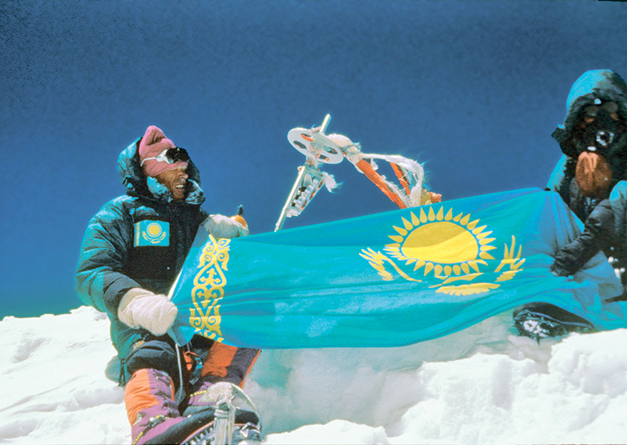 After the Annapurna tragedy, its only survivor, the Italian alpinist Simone Moro, takes a flag of Kazakhstan on every ascension in tribute to his friend Anatoli Boukreev.