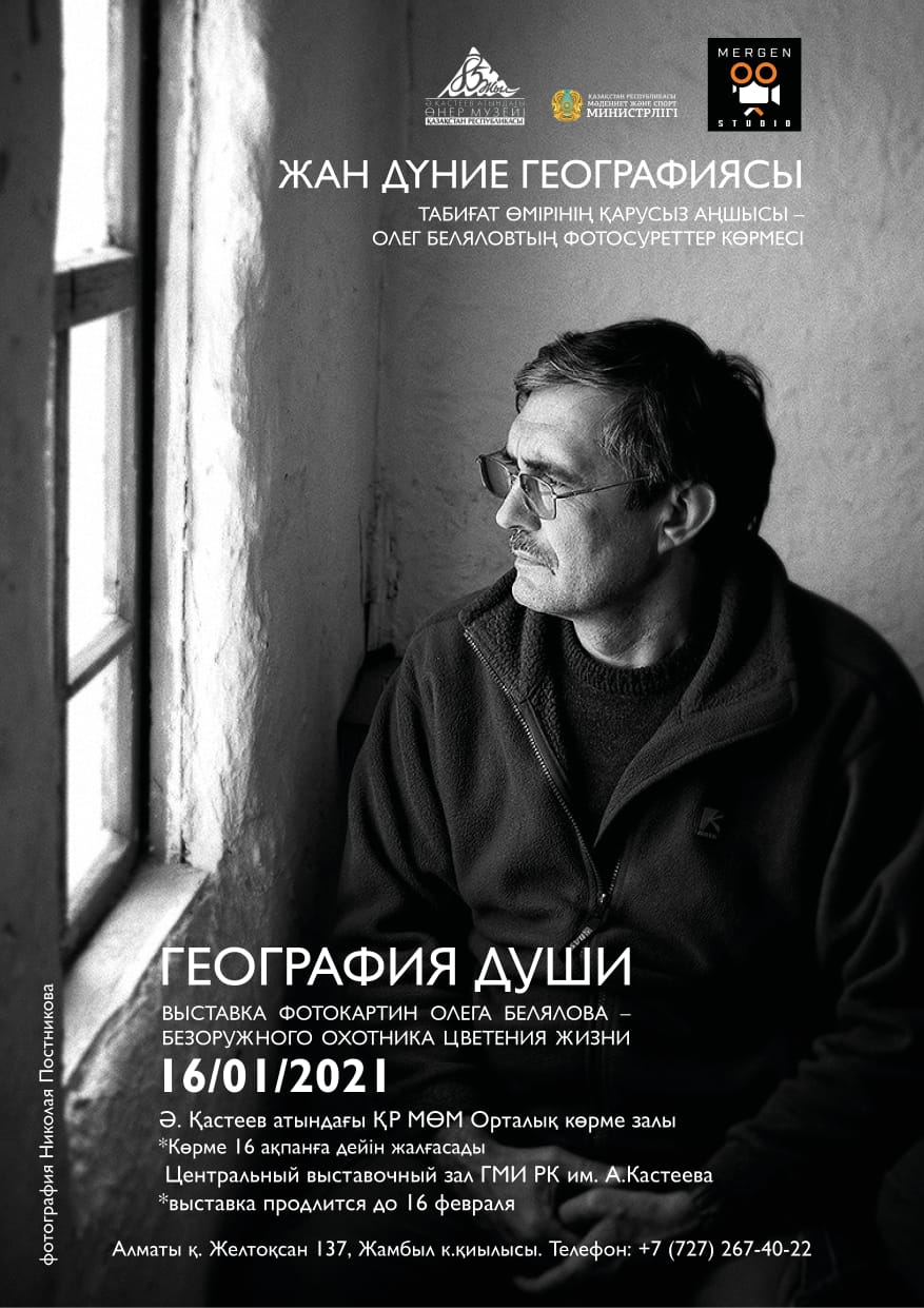 16 января в Центральном выставочном зале Государственного музея искусств имени А. Кастеева на улице Желтоксан, 137 пройдет открытие ретроспективной фото-выставки «География души» Олега Белялова. Выставка продлится ровно один месяц.