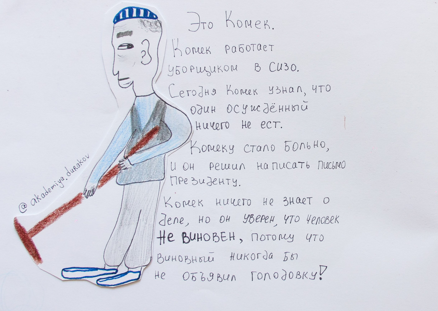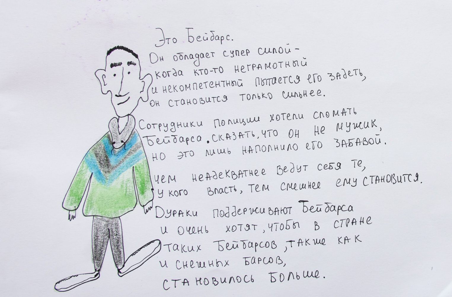 «Не буду врать, что мне страшно. Страшно от бесчеловечности и нелогичности. Какая-то жизнь в зазеркалье. Я была на апелляционном суде Аси и Бейбарыса. Когда я смотрела на людей в форме, судью и ещё каких-то непонятных людей в строгих костюмах, мне было интересно: они понимают что происходит? Как они могут выносить такой приговор? Неужели они не видят, какой абсурд происходит? Почему после слов „техническая ошибка“ нельзя было не давать 15 суток? Что если это намеренно: ничего не знаем — надо посадить?