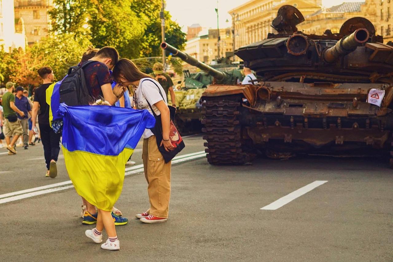 На Хрещатике — «парад» военной техники РФ: десятки российских танков, БМП, гаубиц и самоходных орудий, сожженых украинскими войсками и партизанами Сопротивления после 24 февраля. Сегодня не только День Незалежності Украины, но и ровно шесть месяцев со дня вторжения российских войск.